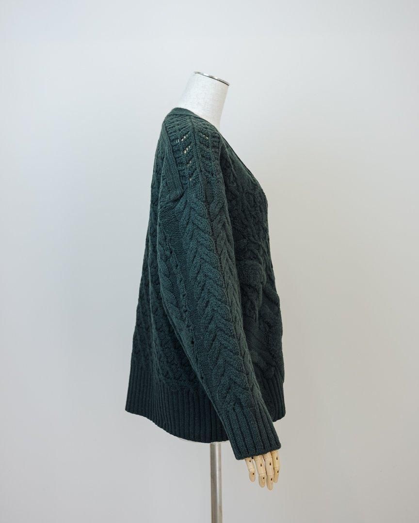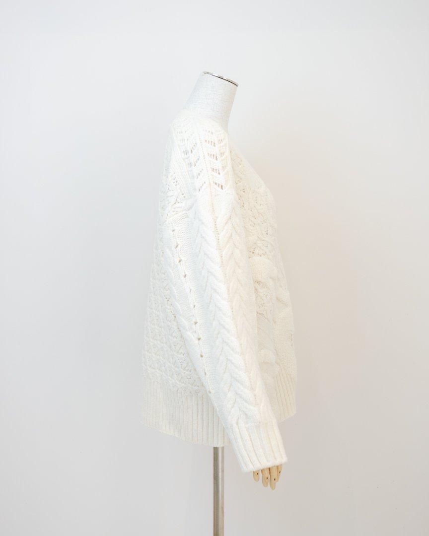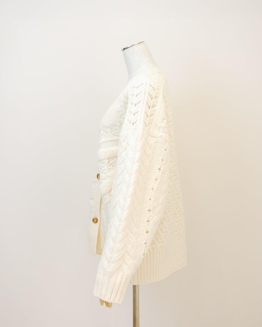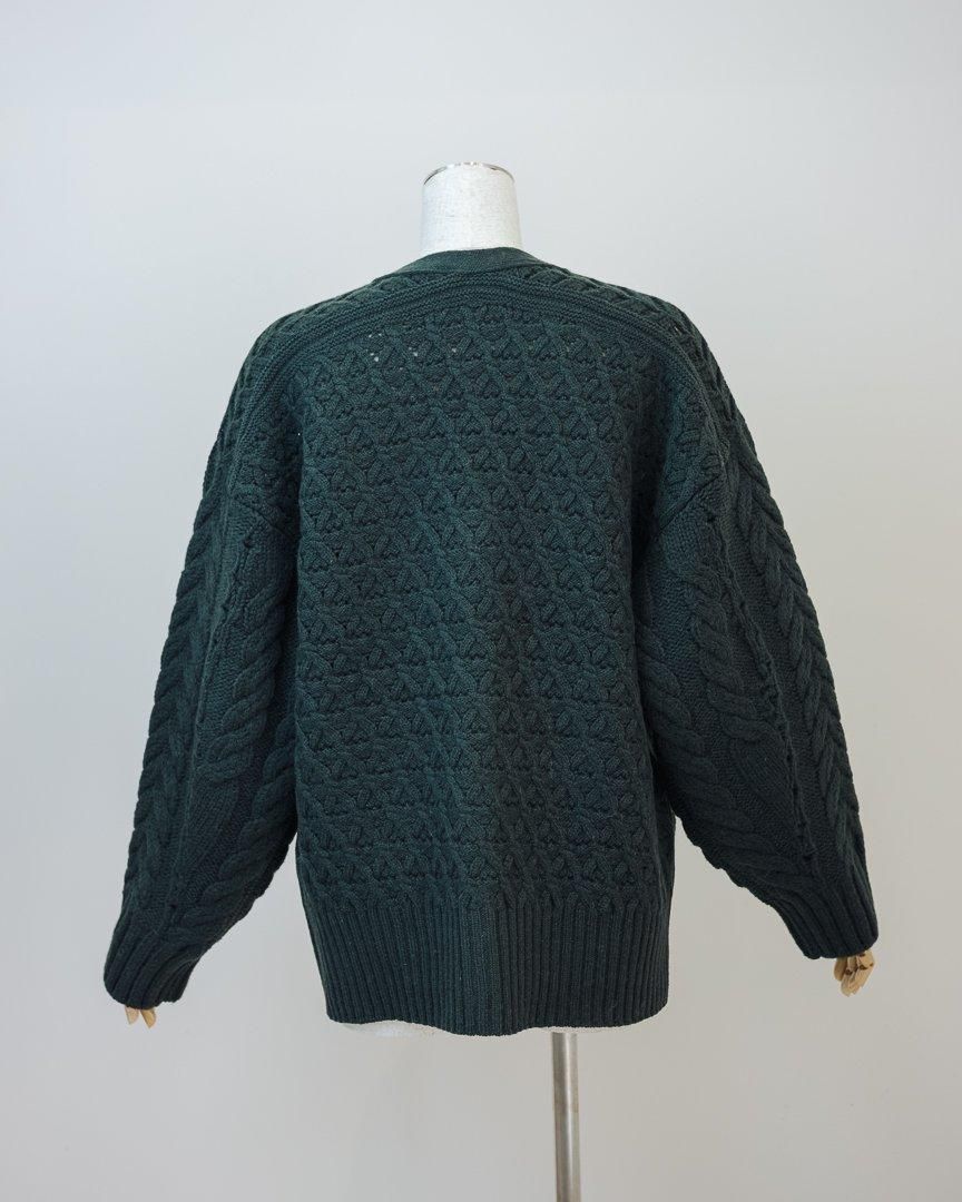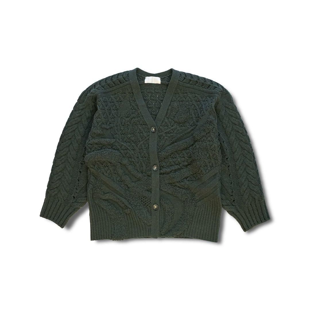 立体的な花柄が印象的なローゲージのニットカーディガン