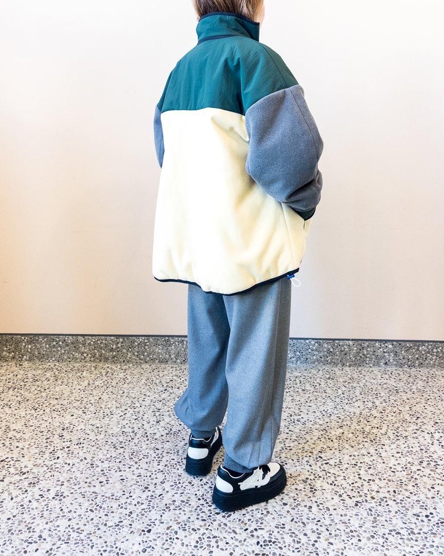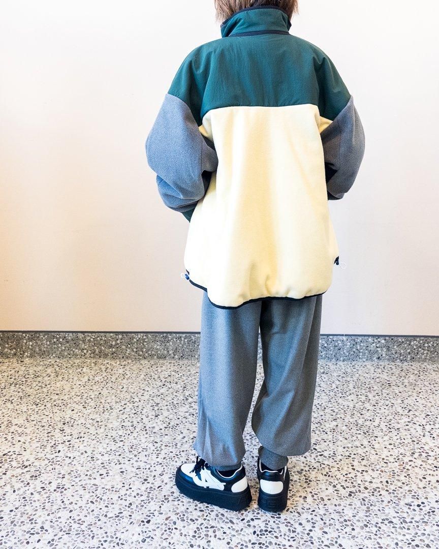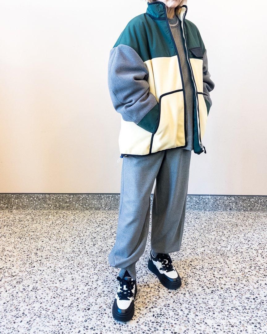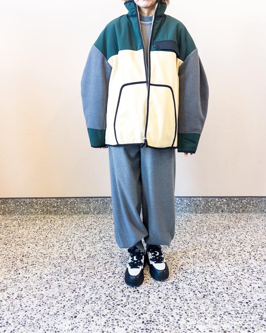 nagonstansらしい配色が特徴的なブルゾン。裾はゆったりとしたフレアシルエットになっていながらも、ドローコードが付いている為、シルエットを変化させることもでき、スタイリングの幅を広めてくれるアイテムです。