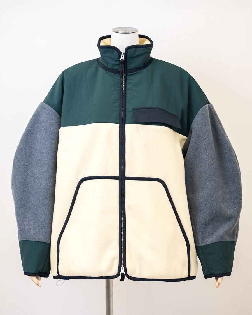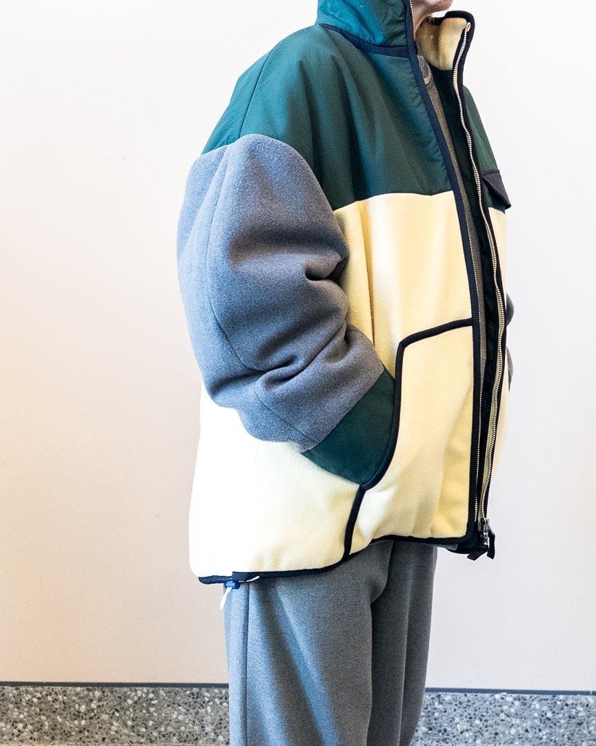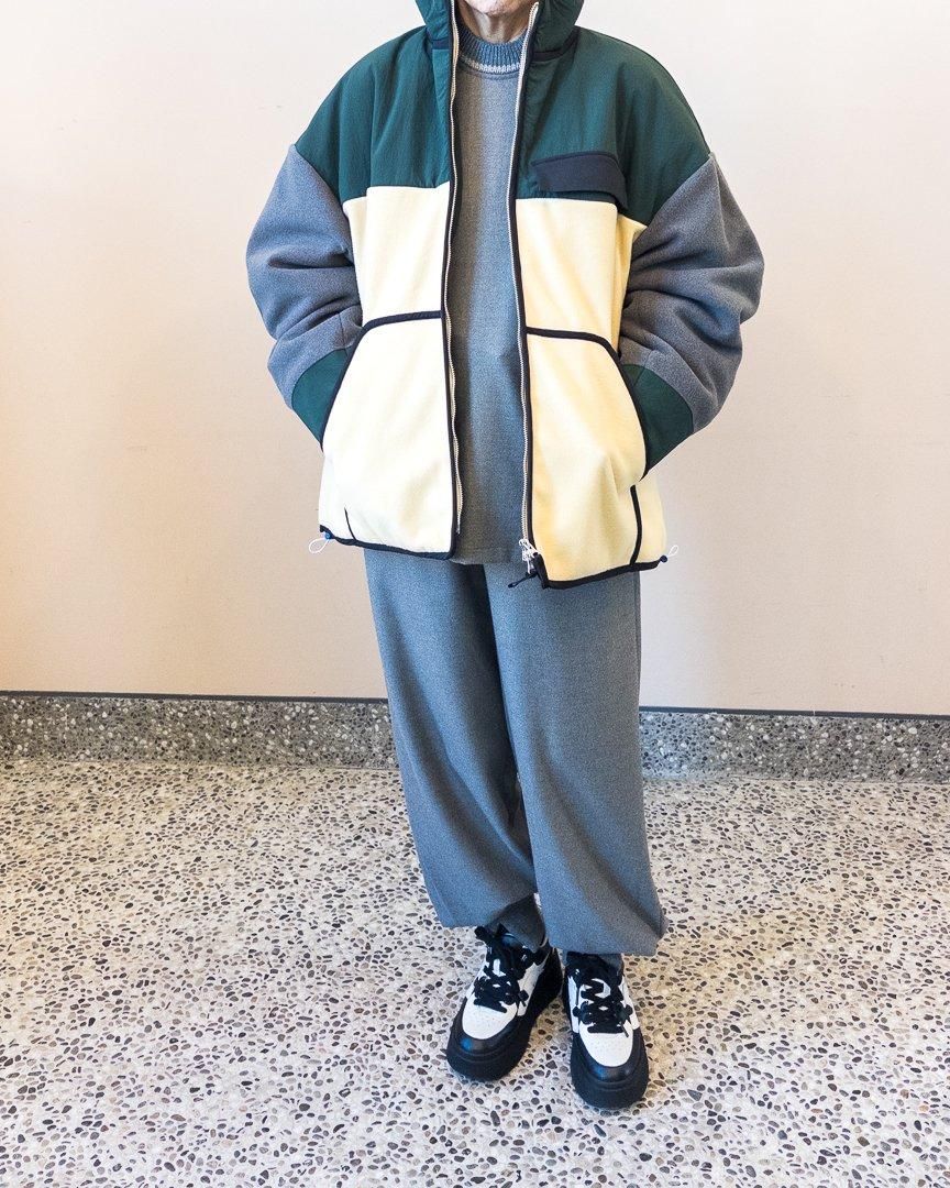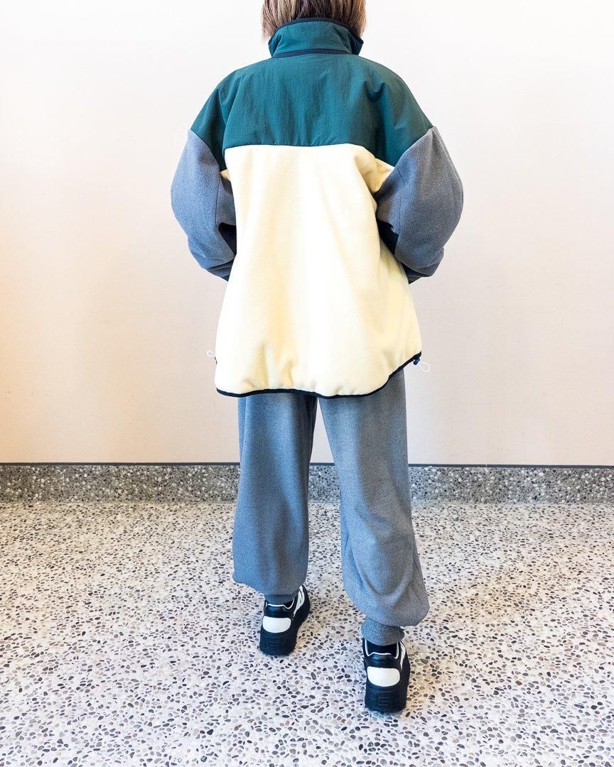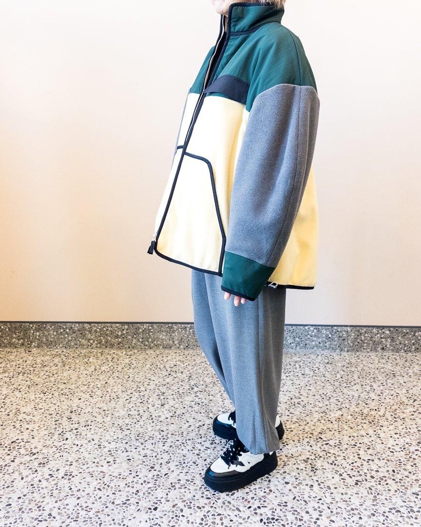 nagonstansらしい配色が特徴的なブルゾン。裾はゆったりとしたフレアシルエットになっていながらも、ドローコードが付いている為、シルエットを変化させることもでき、スタイリングの幅を広めてくれるアイテムです。