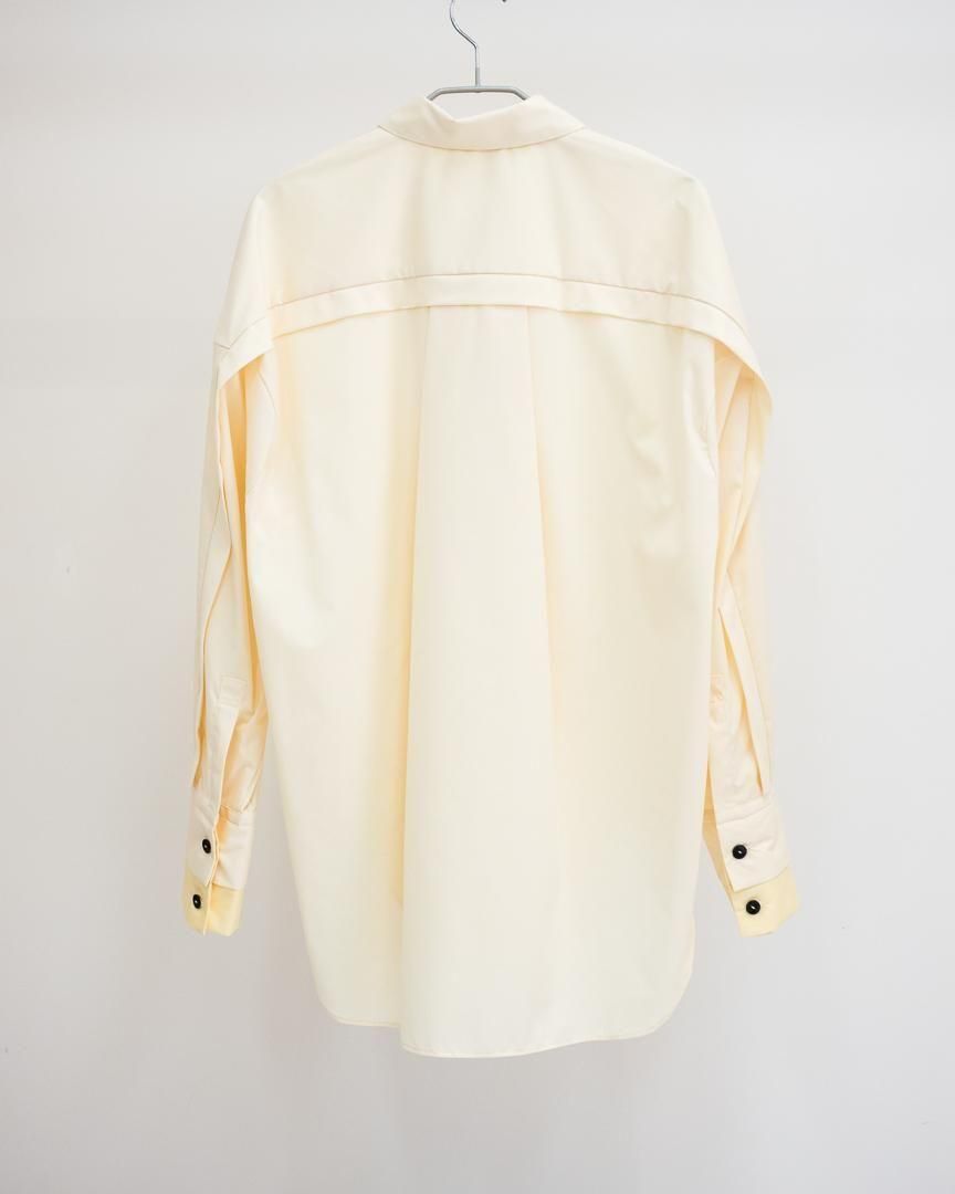 レイヤードにも使える大きすぎない身巾のベーシックシャツ。袖口レイヤードカフス。