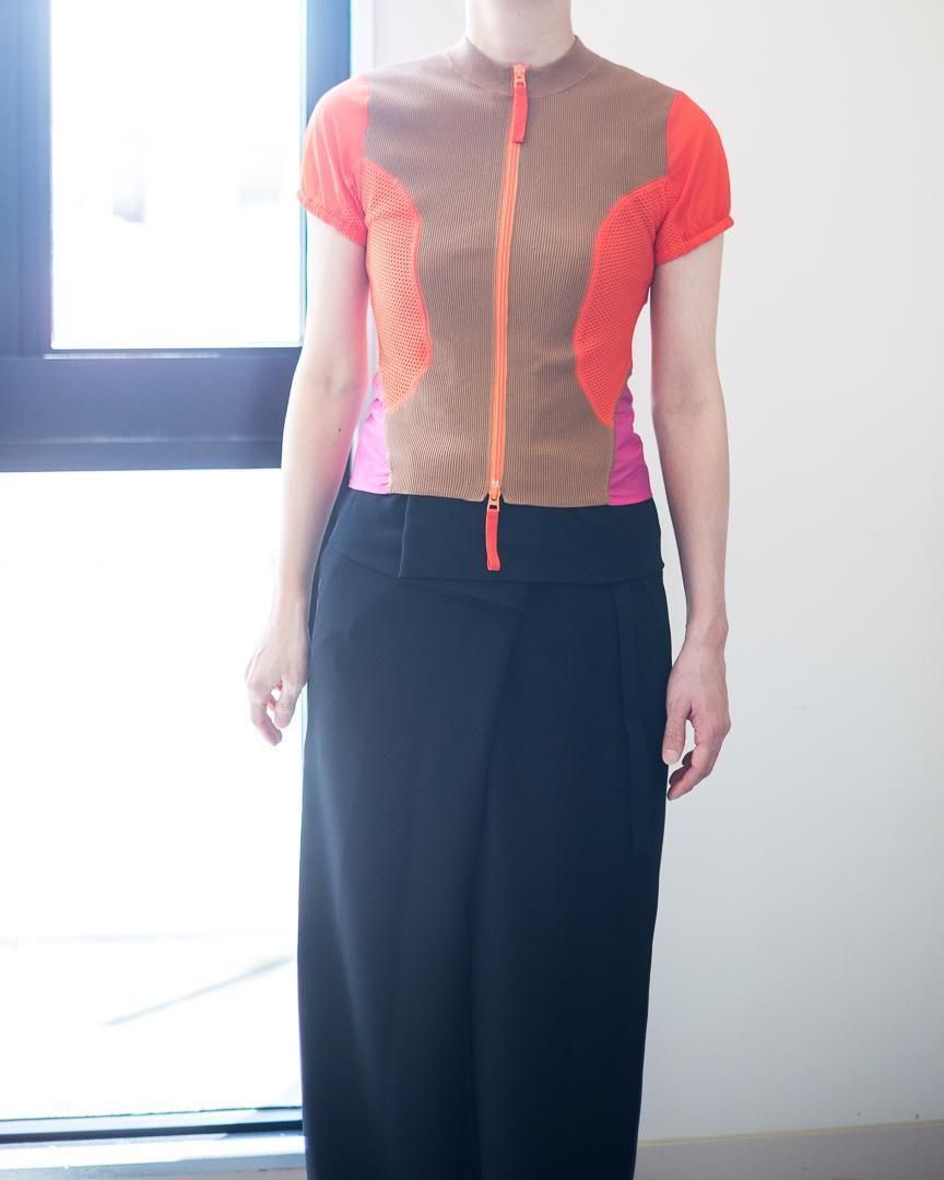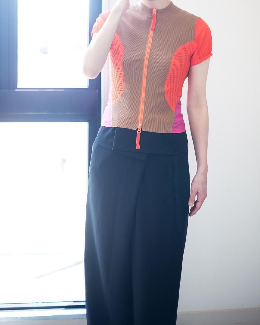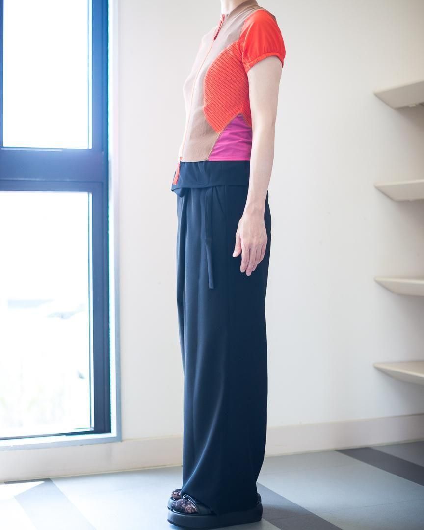 素材のミックス感が目を引くジップ開きプルオーバー。
