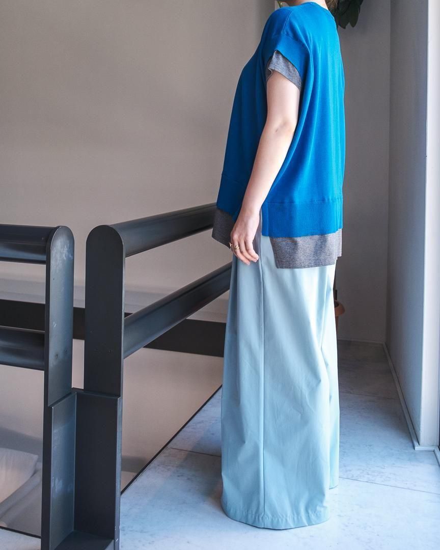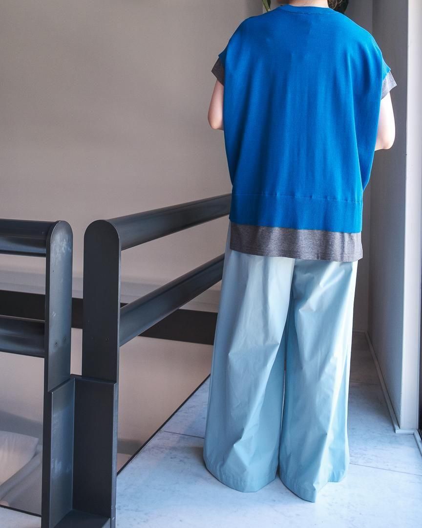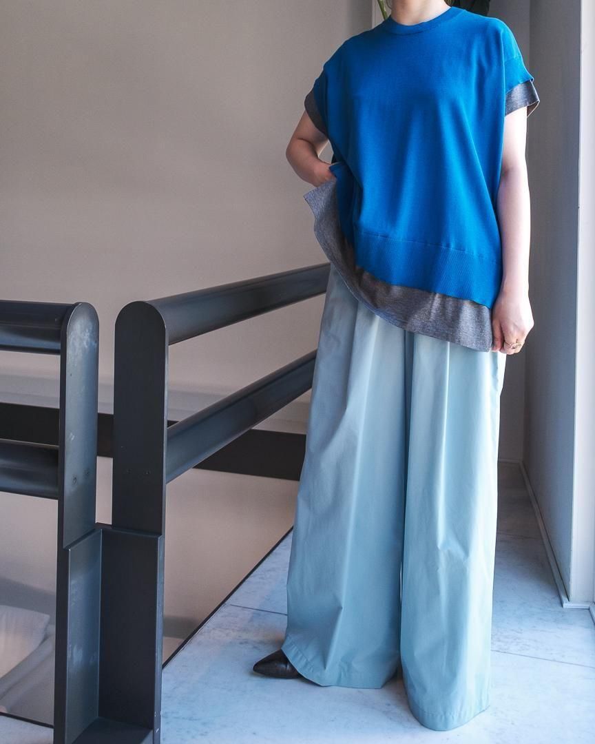 ウエストがずれているようなディティールを採用したワイdpシルエットパンツ。トップスをインしてきた際にスタイリングのポイントになってくれます。
