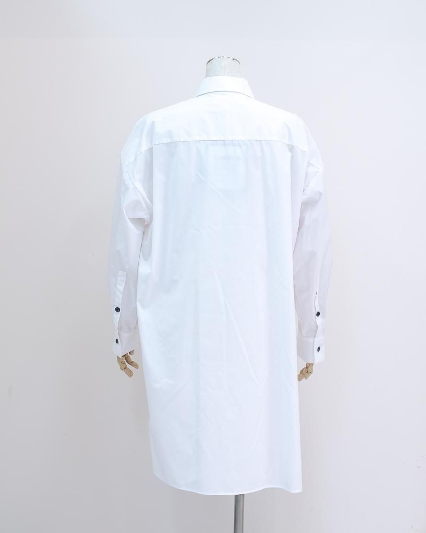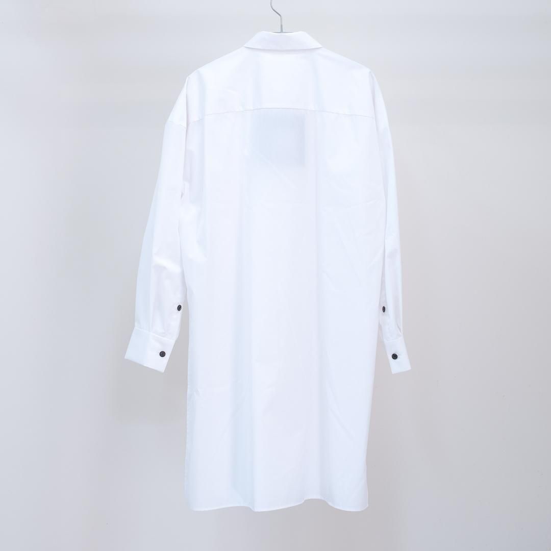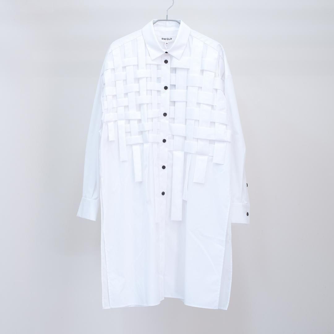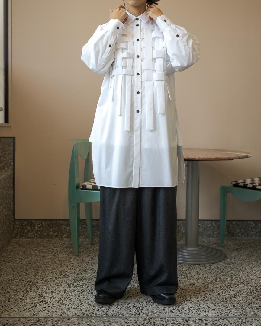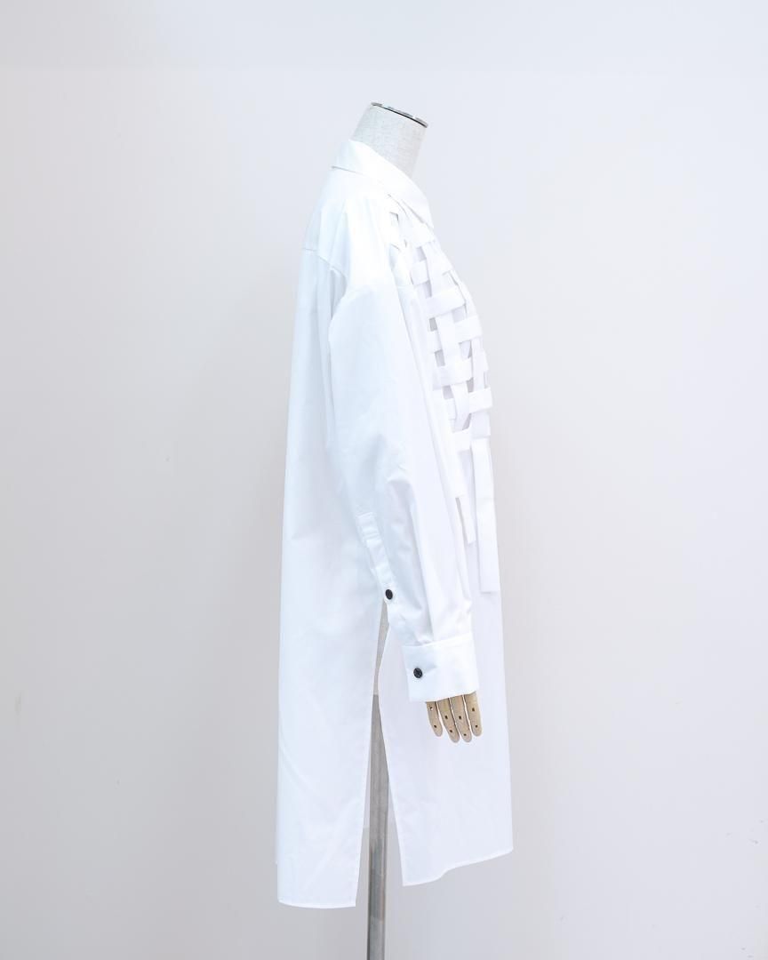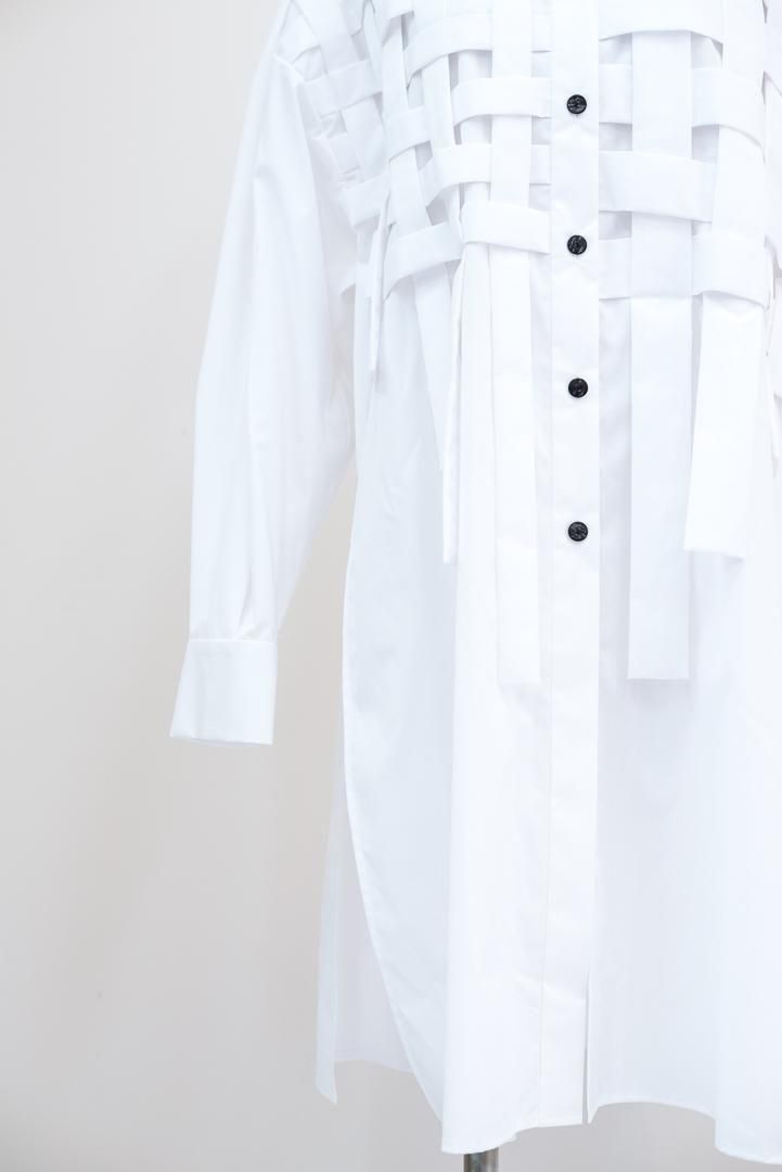 ラタンチェアの編み込んだデザインを発想源にしたロングシャツ。