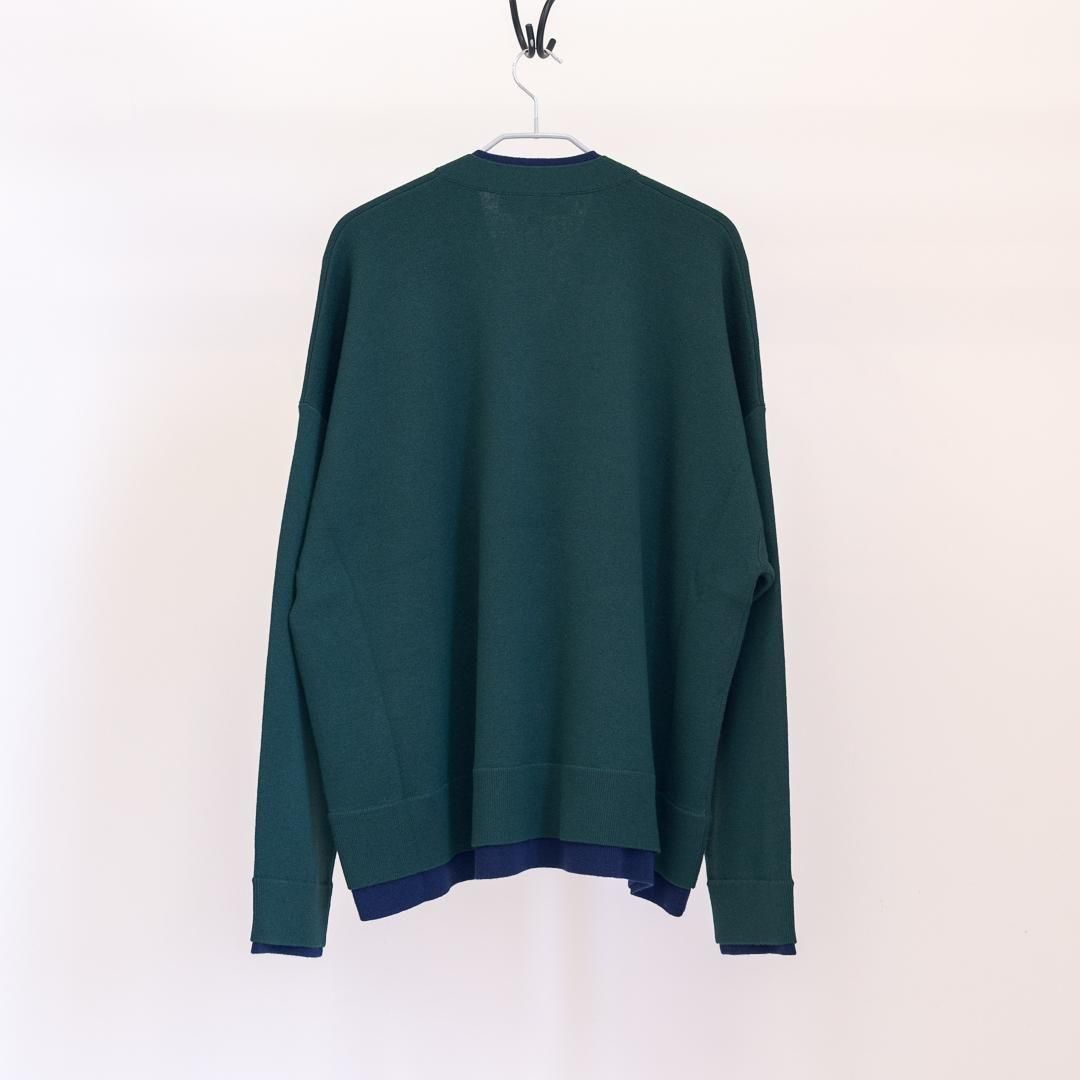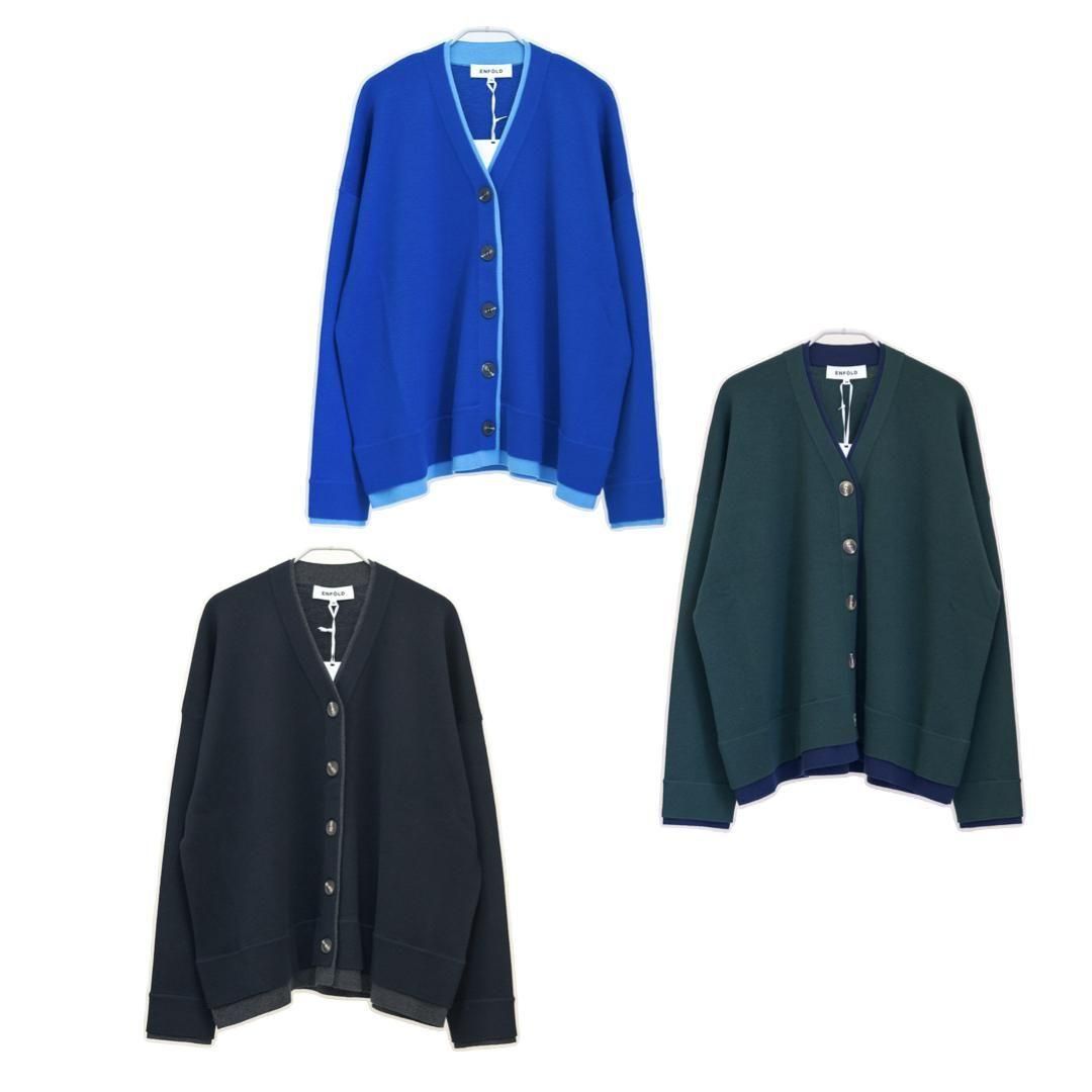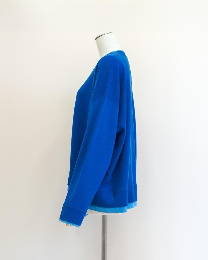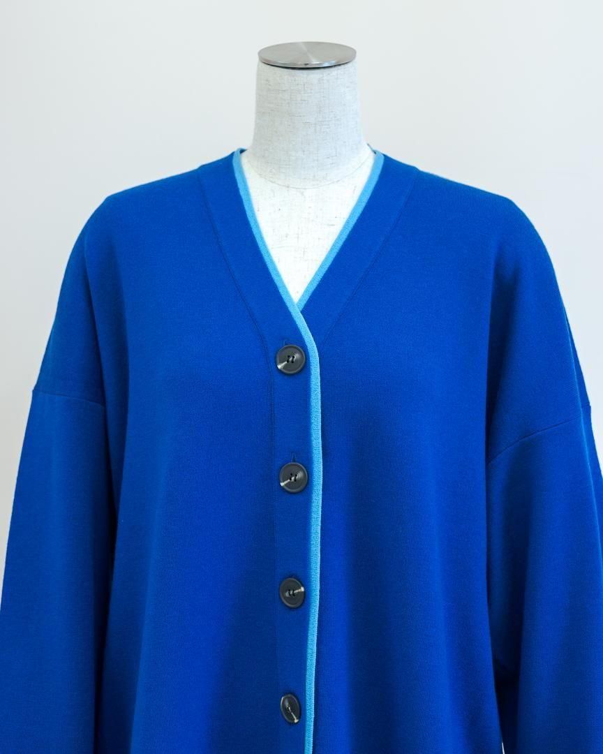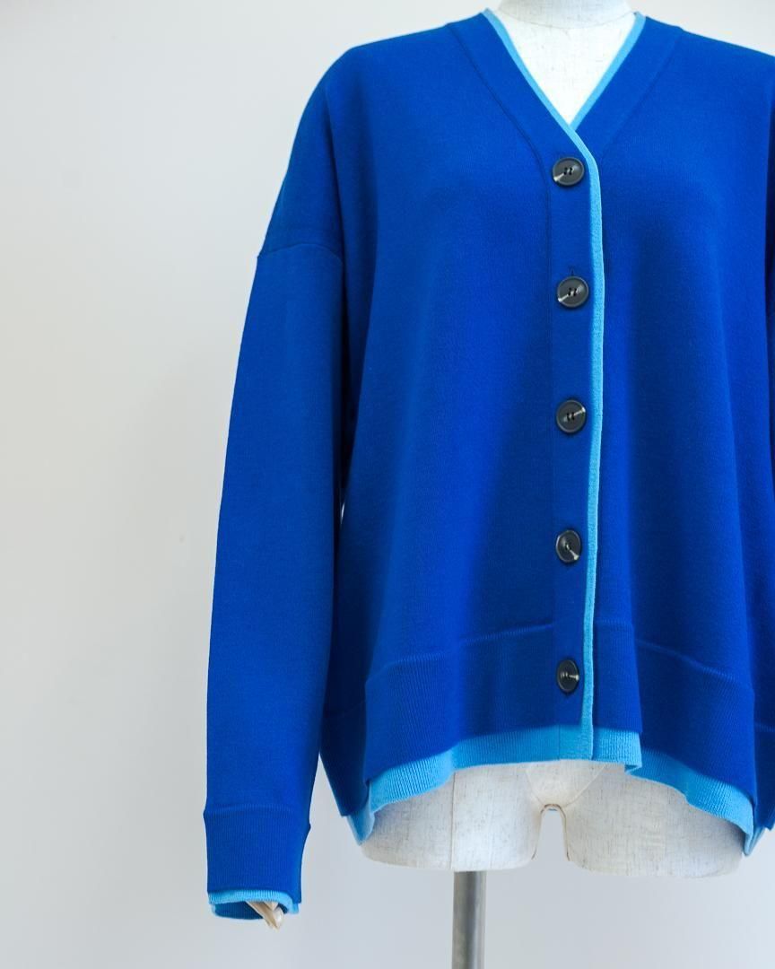 あたかもカーディガンを2枚重ね着しているかのようなありそうでなかった配色ディティールがスタイリングにさりげなく彩りをプラスしてくれます。
