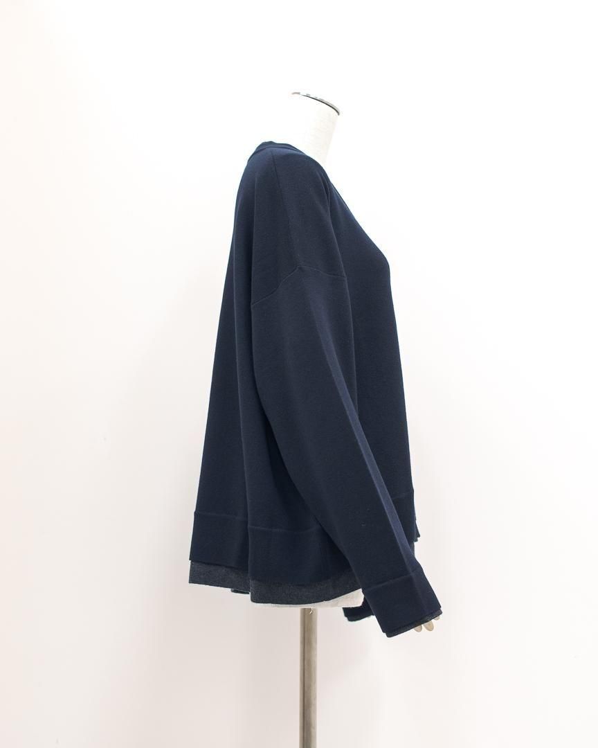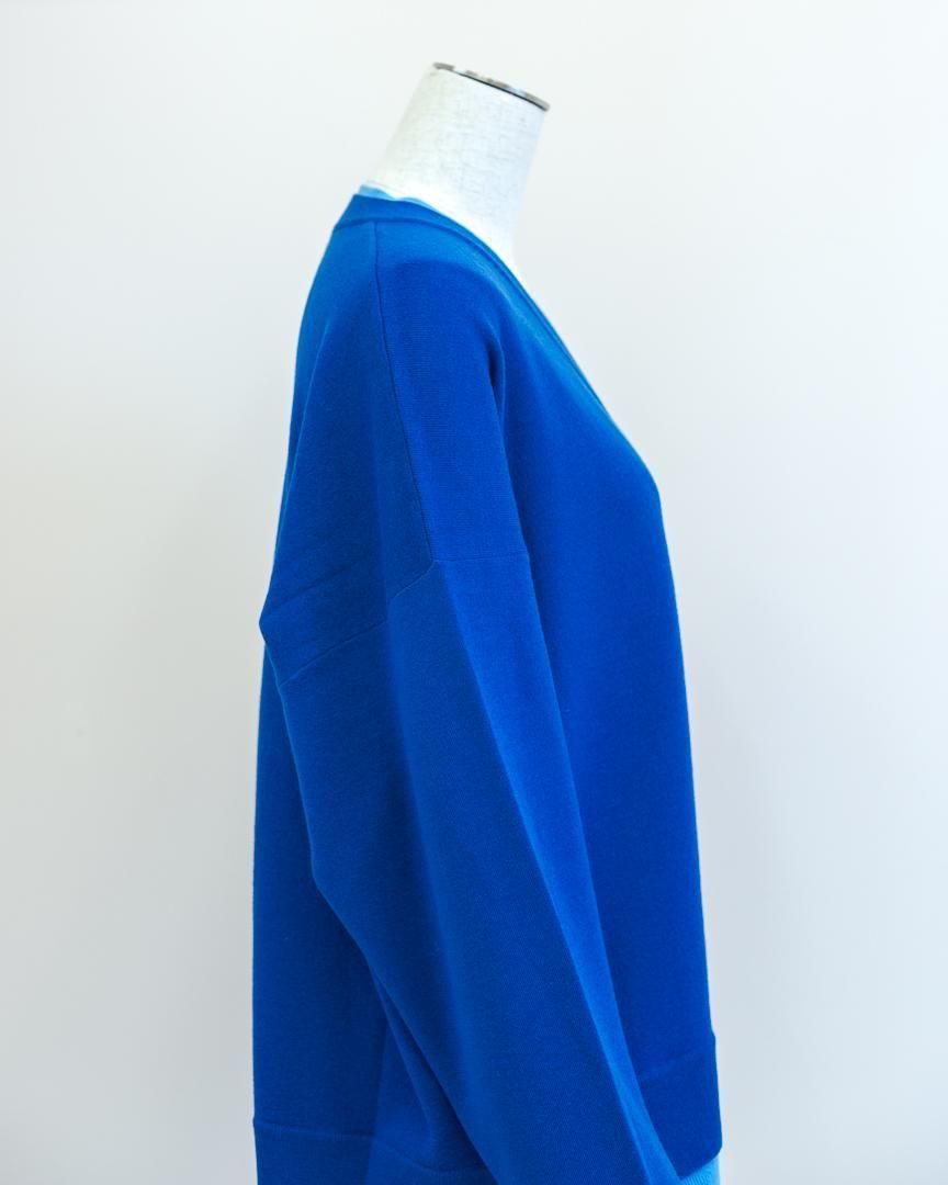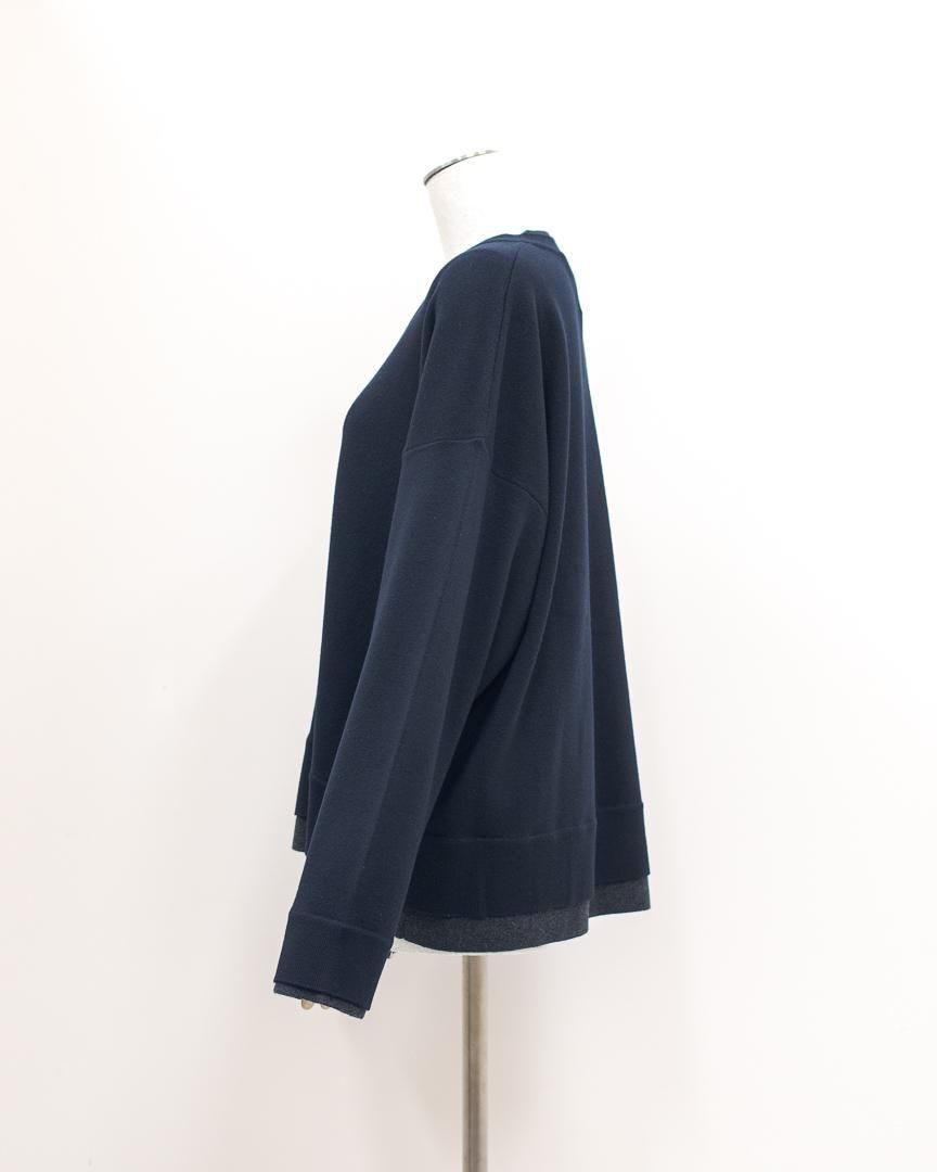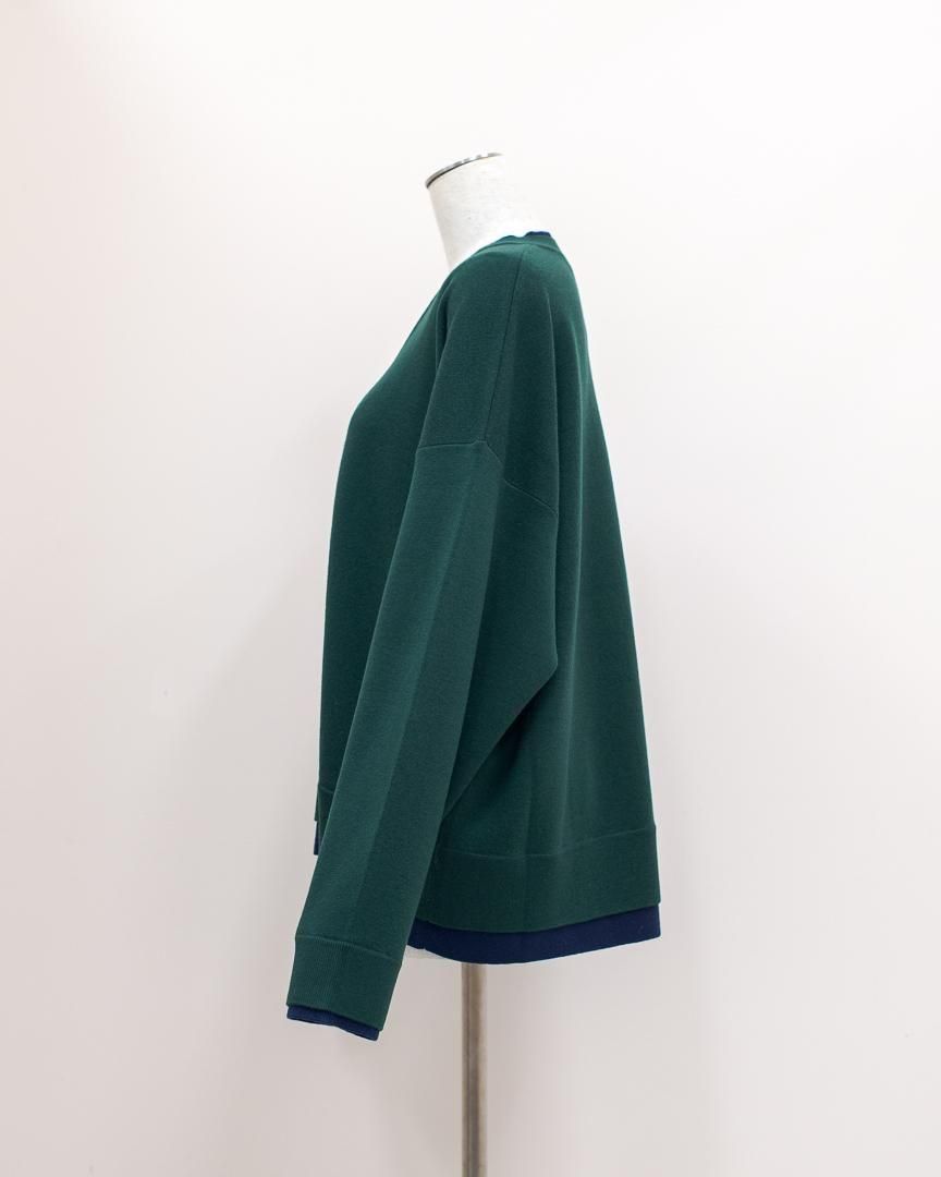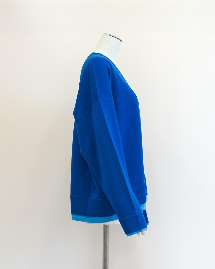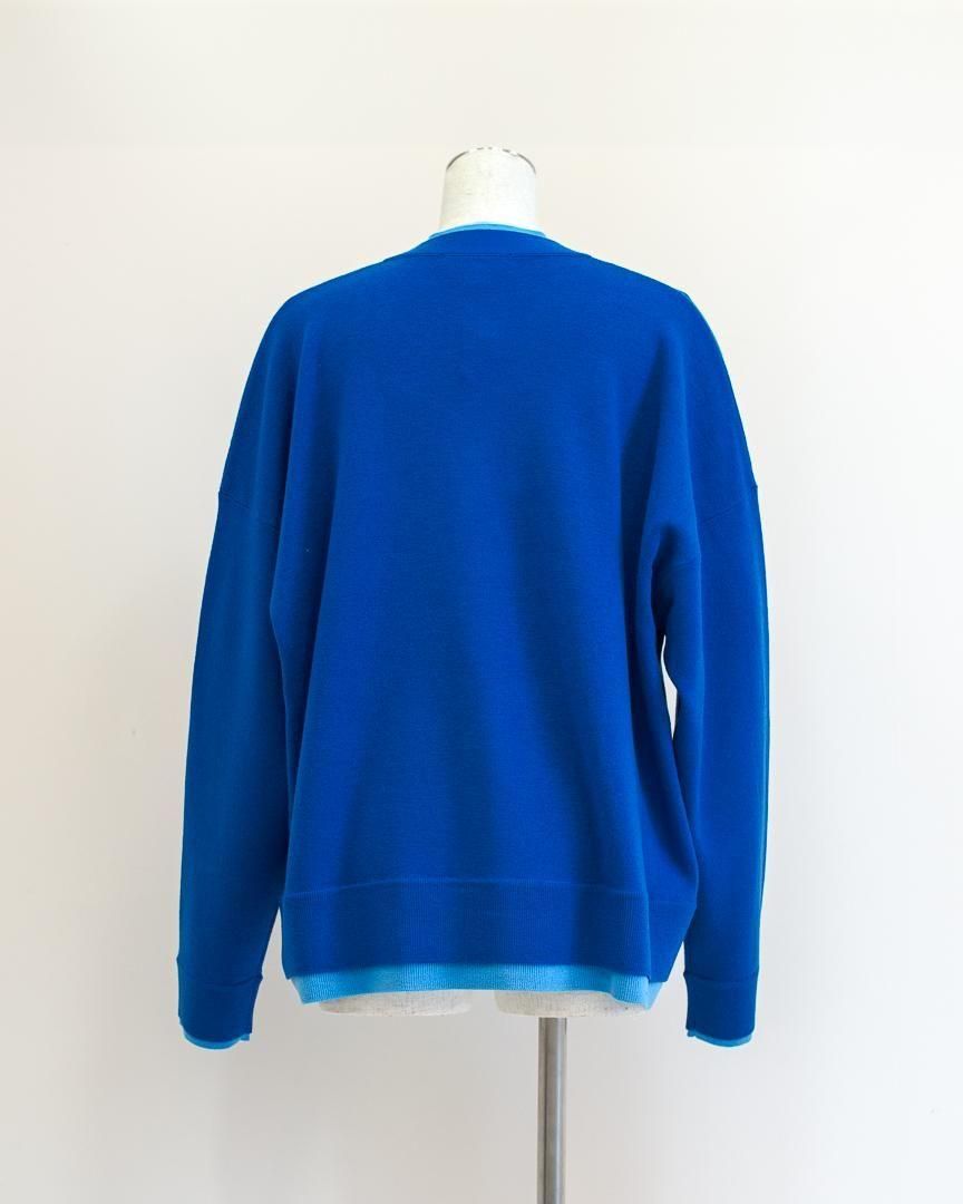 あたかもカーディガンを2枚重ね着しているかのようなありそうでなかった配色ディティールがスタイリングにさりげなく彩りをプラスしてくれます。