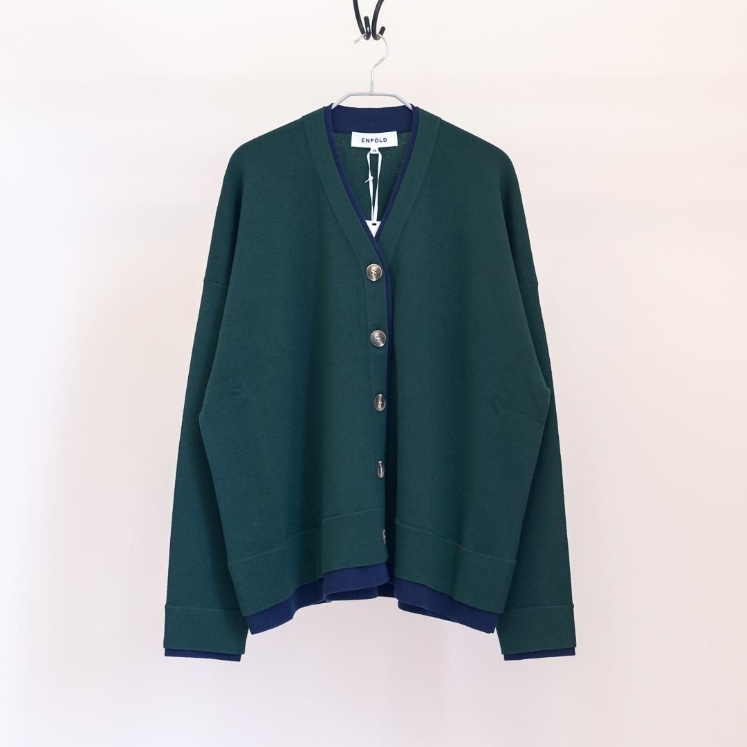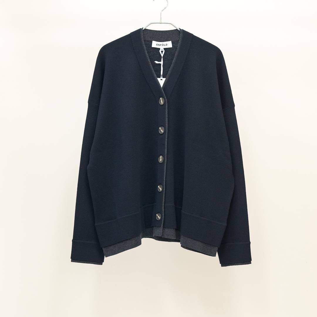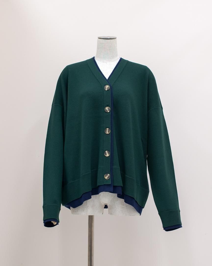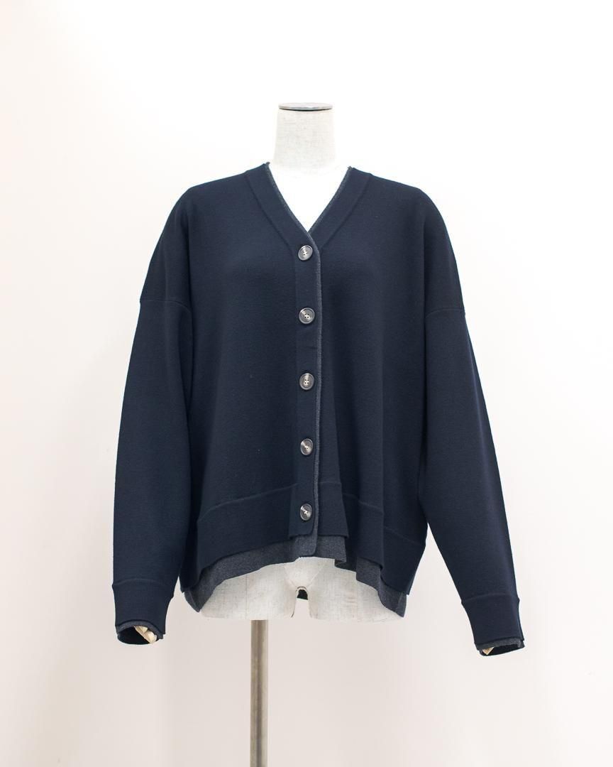 前立てと裾と袖口の2重がポイントにになっているデザインカーディガン。