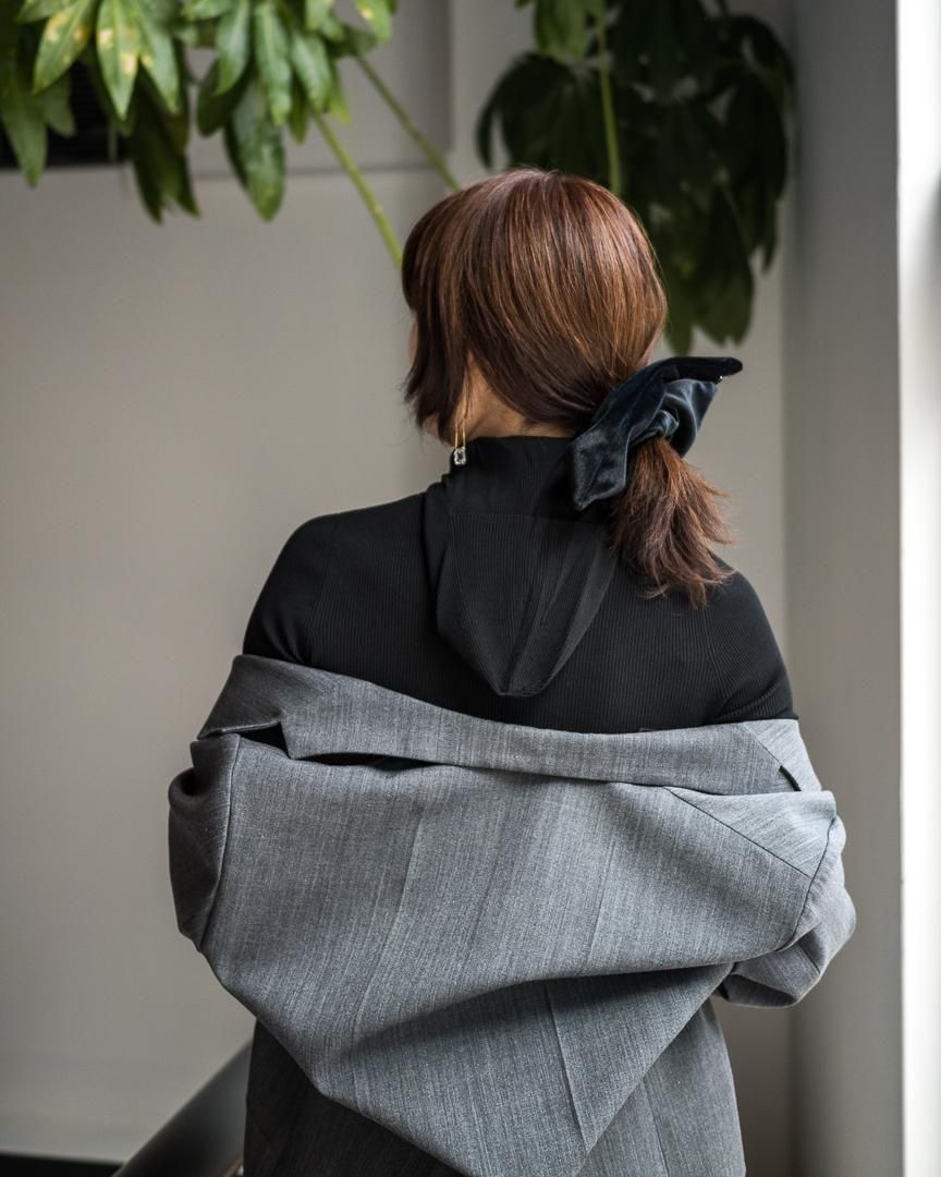 【ポイント】コンパクトなサイズ感のリブプルオーバーにフードディティールをプラスした新しいプルオーバーアイテム。インナー使いに是非。