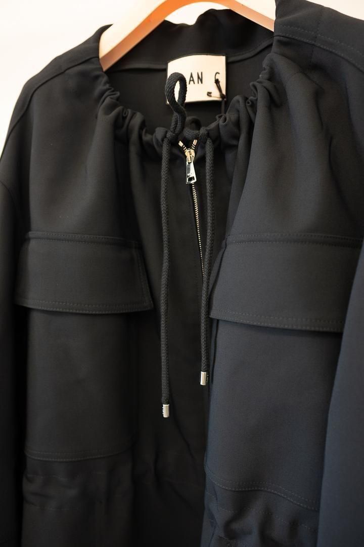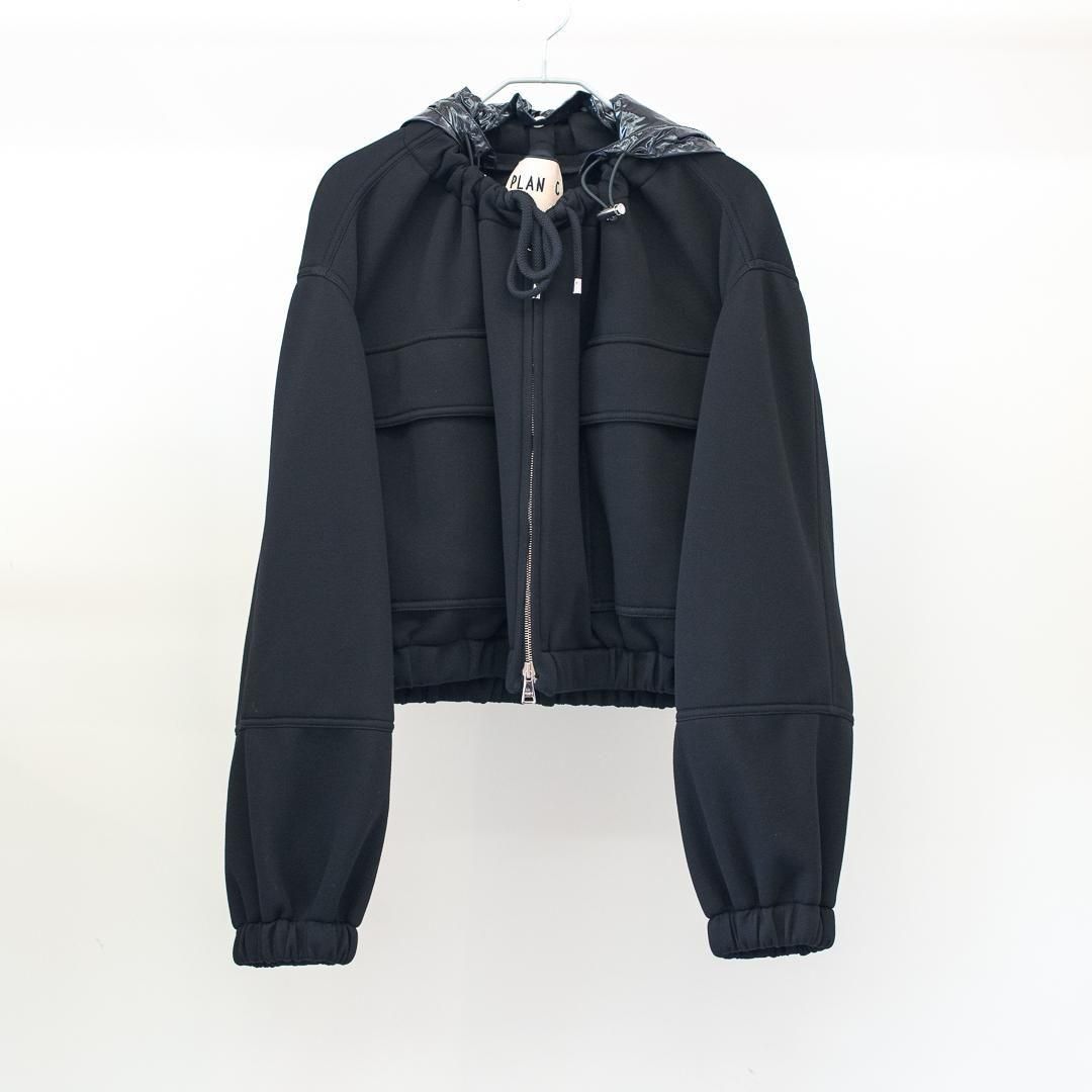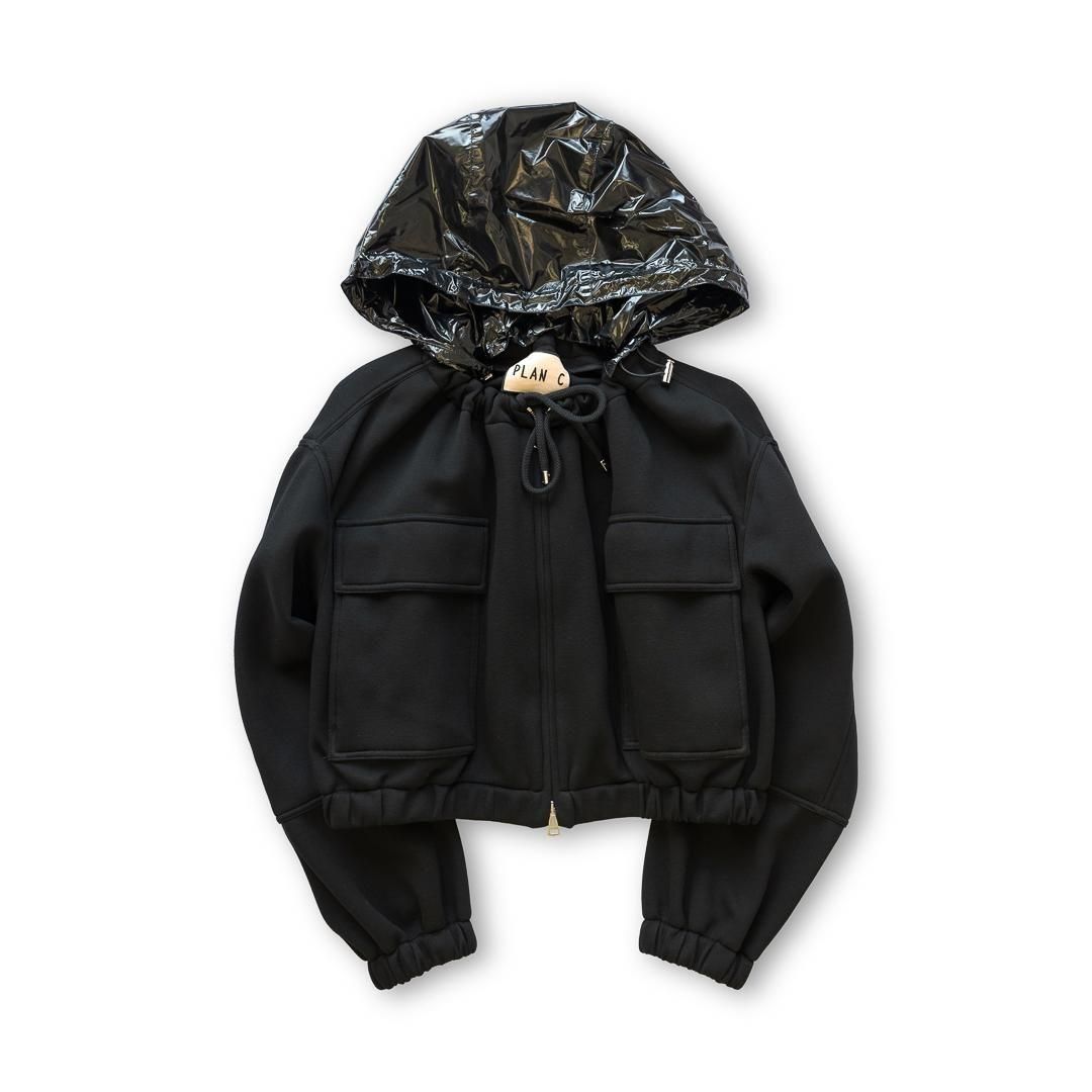 【ポイント】スナップボタン付き取り外し可能なショート丈ブルゾン。ダンボール素材で軽快な着心地。