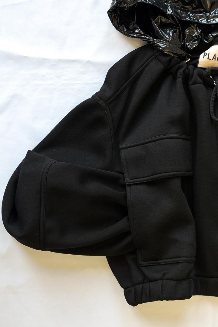 透け感:なし|伸縮性:ややあり|光沢感:フードあり|生地の厚さ:中厚