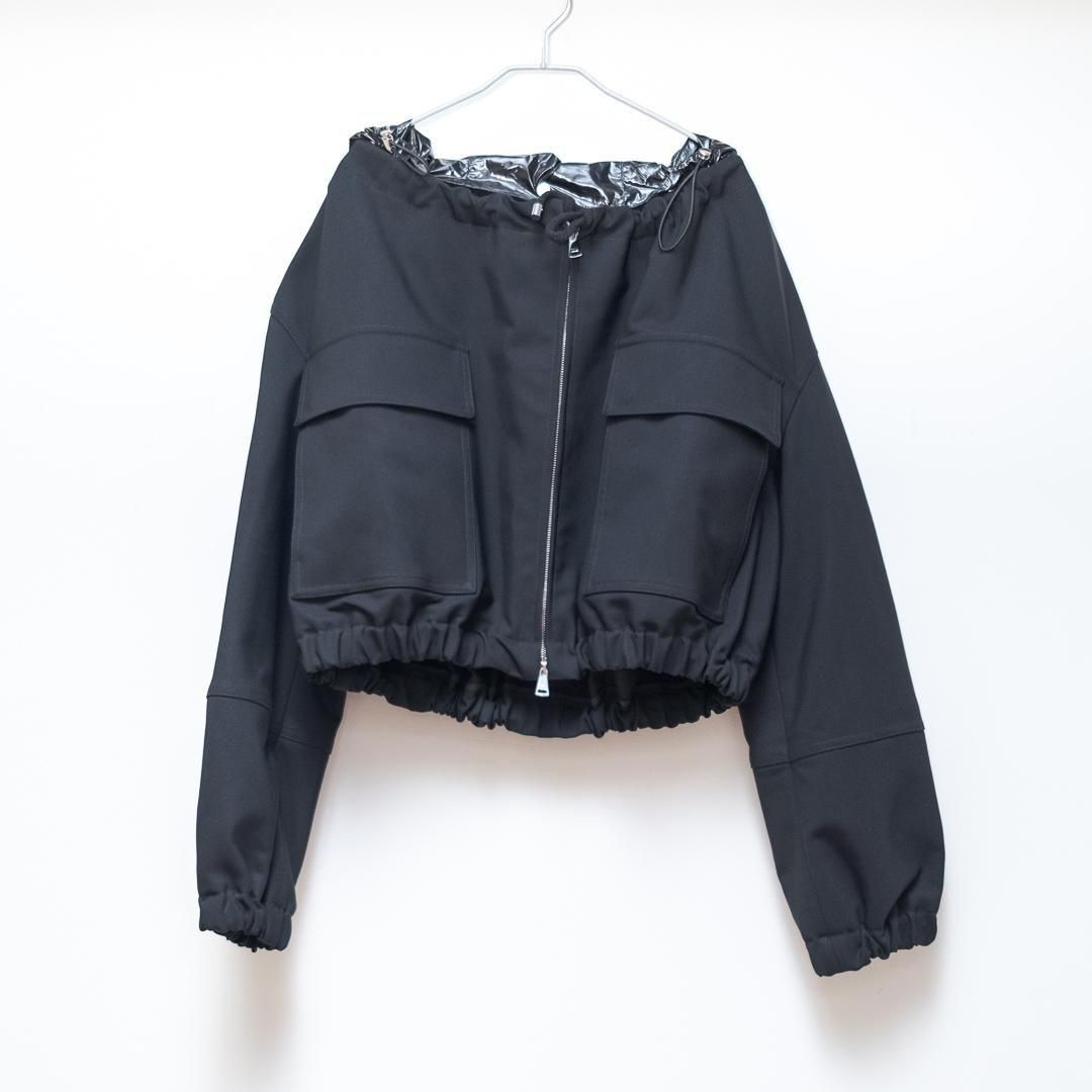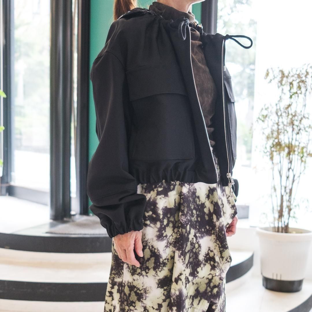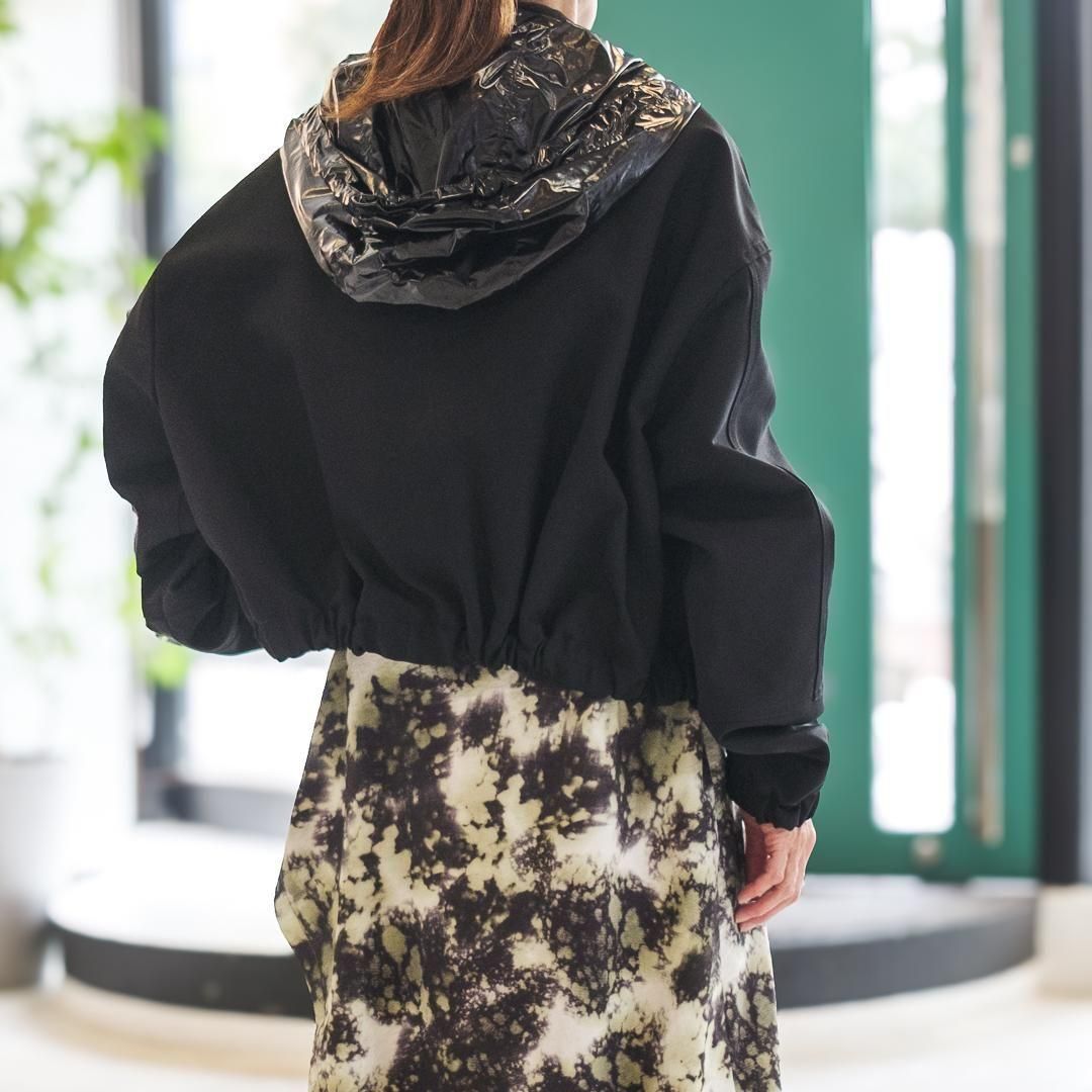 【ポイント】スナップボタン付き取り外し可能なショート丈ブルゾン。スキューバ素材と比較してしっかりめの素材で重厚感があります。