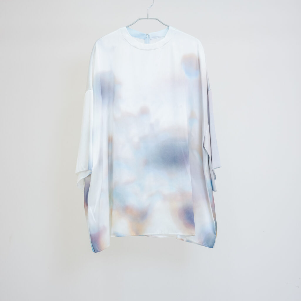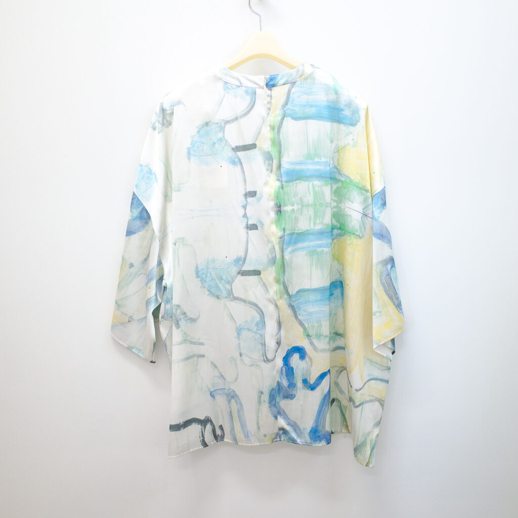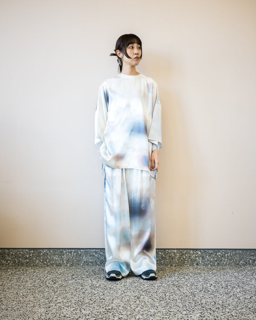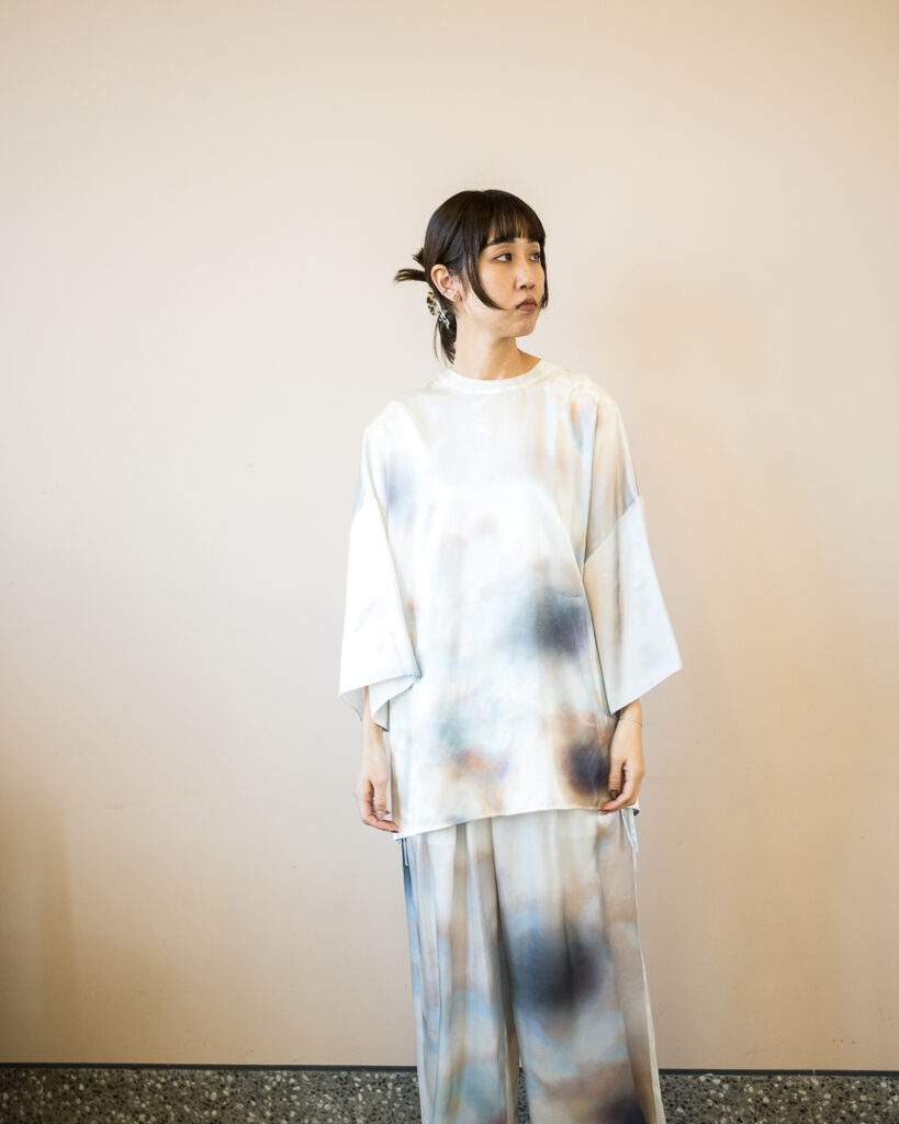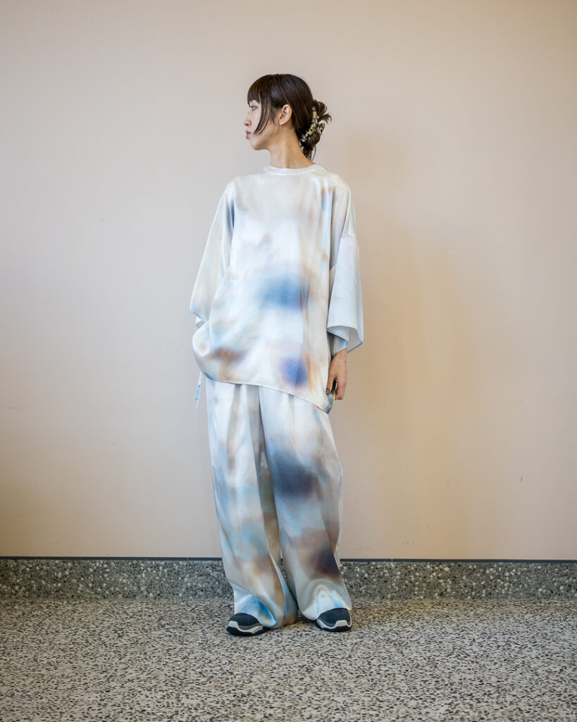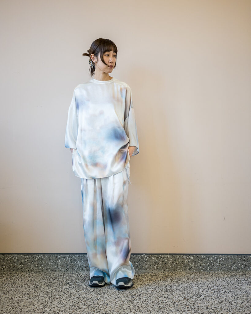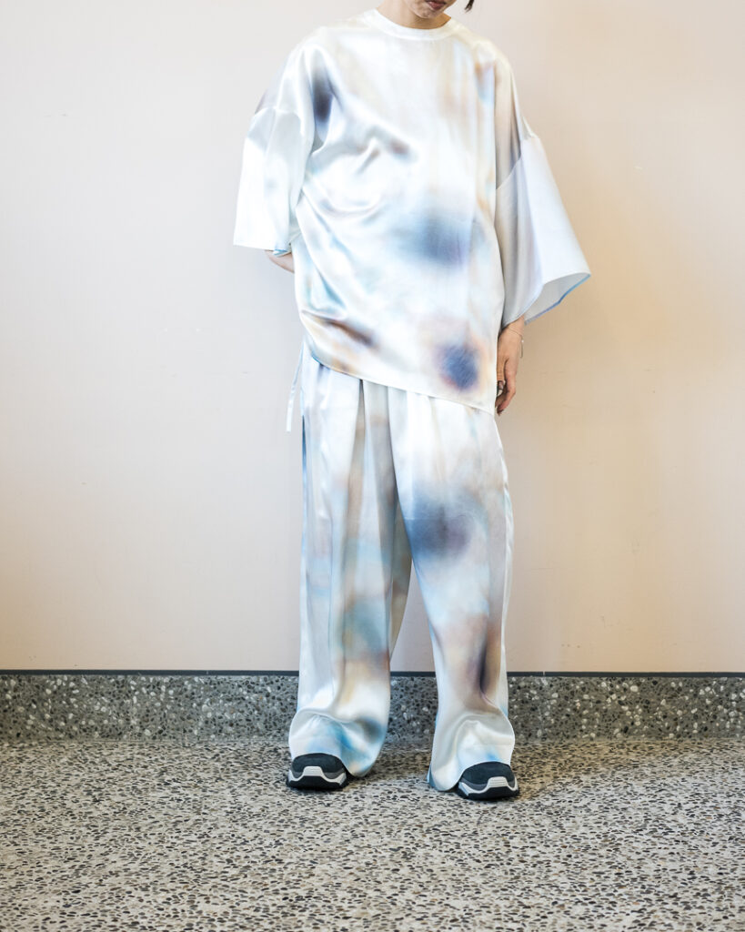 丸山さやか氏とのコラボレーション柄を大胆にプリントした、巨大なモンスター用の着用をイメージしたBIGシルエットのサテンTシャツ。