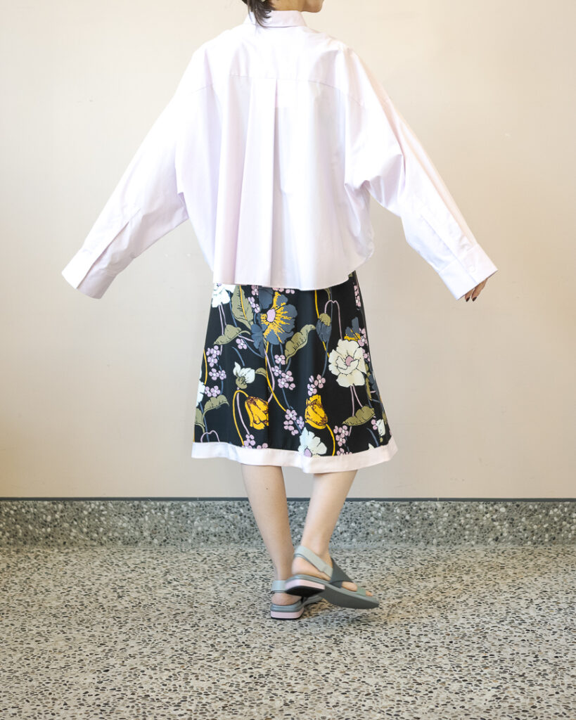短め丈のため羽織としてもスタイルバランスが取りやすく普通っぽくならずに、少し長めの後ろ丈が腰まわりをカバーしてくれます。