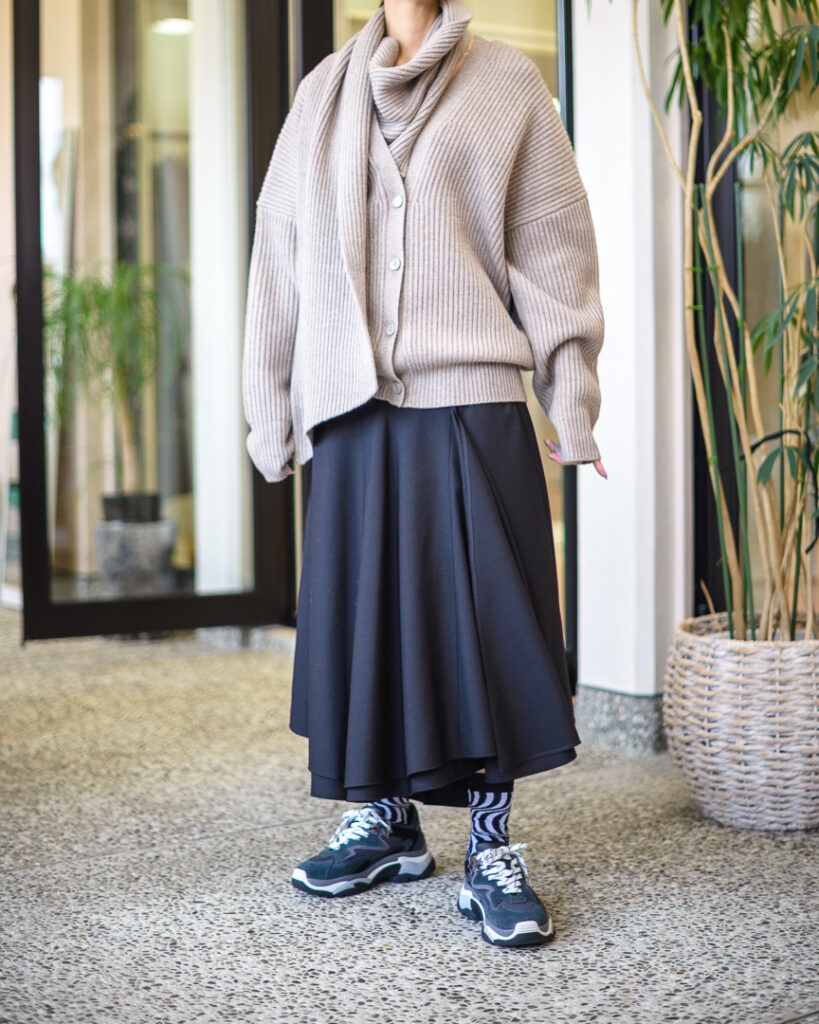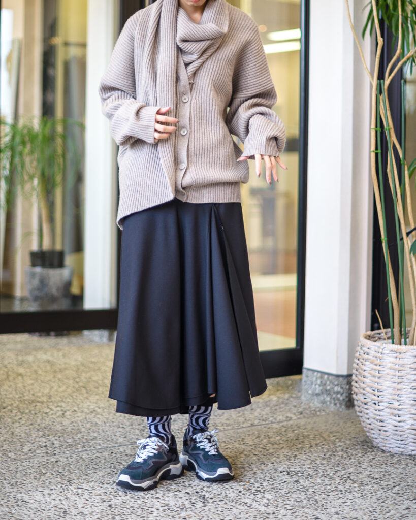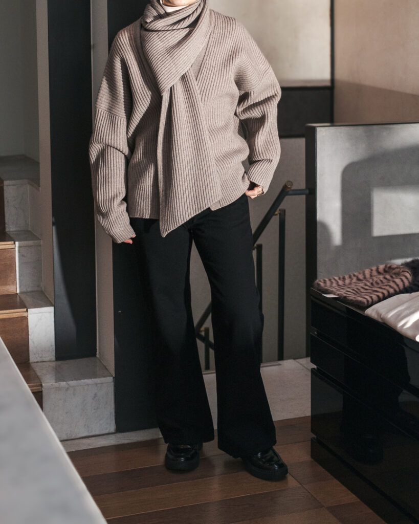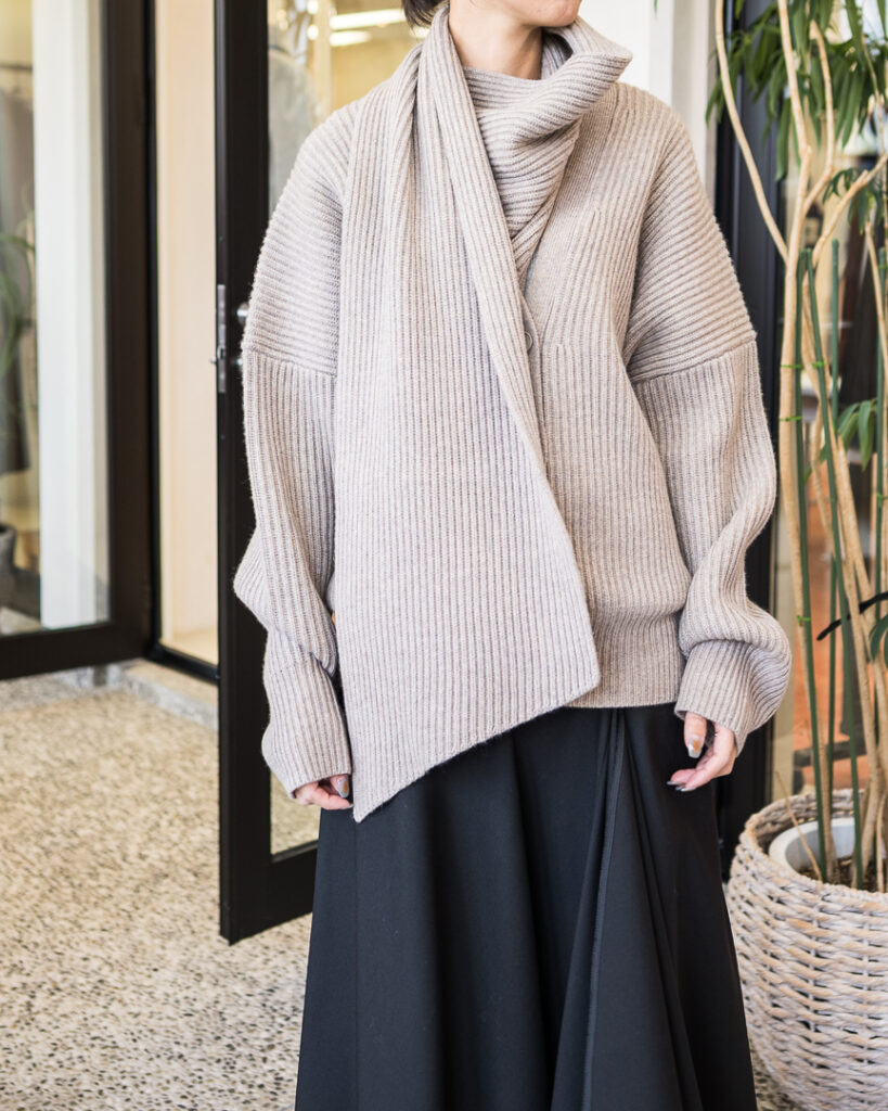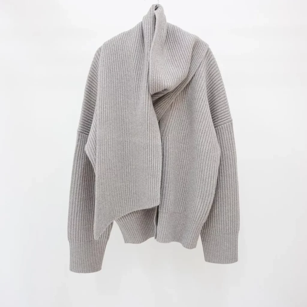 取り外し可能なスカーフが付いたオーバーサイズのカーディガン。