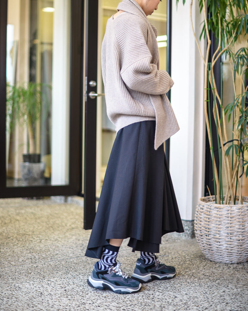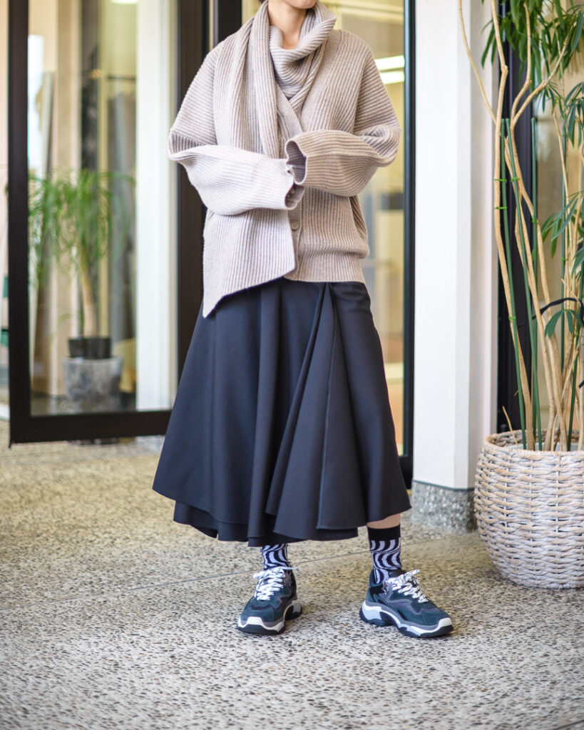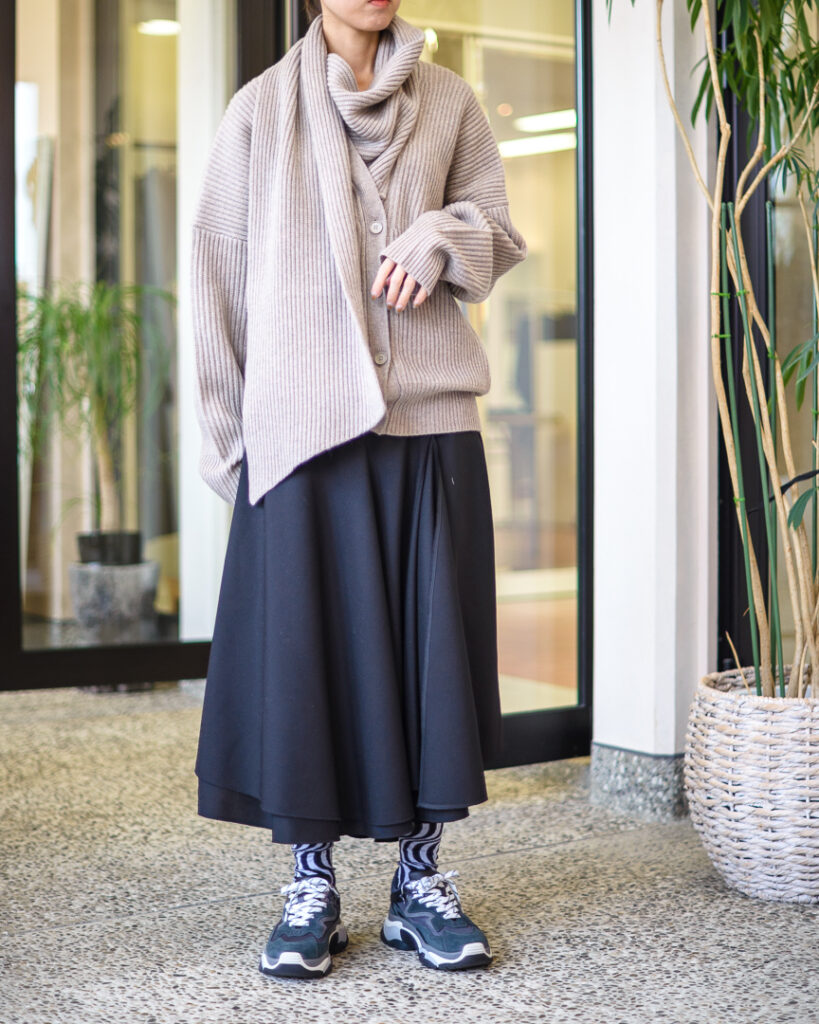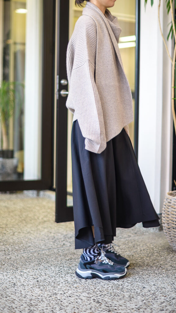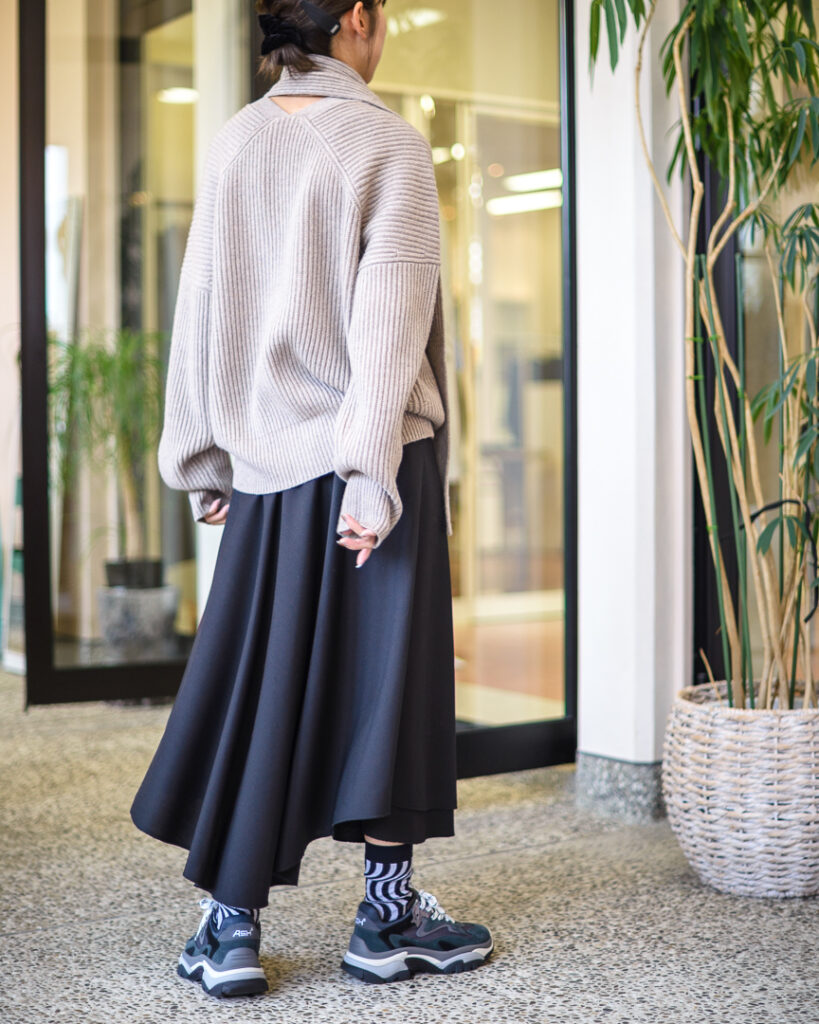 程よい肩抜け感もありつつ、ワイナンツらしく品よくまとまります。