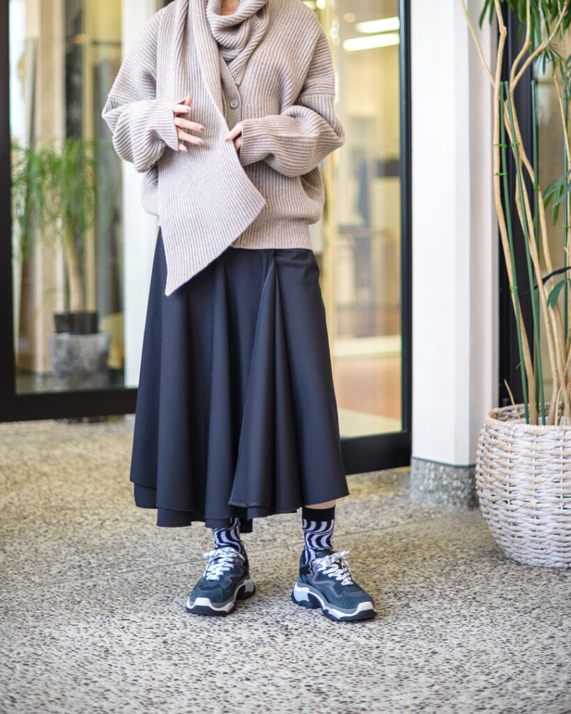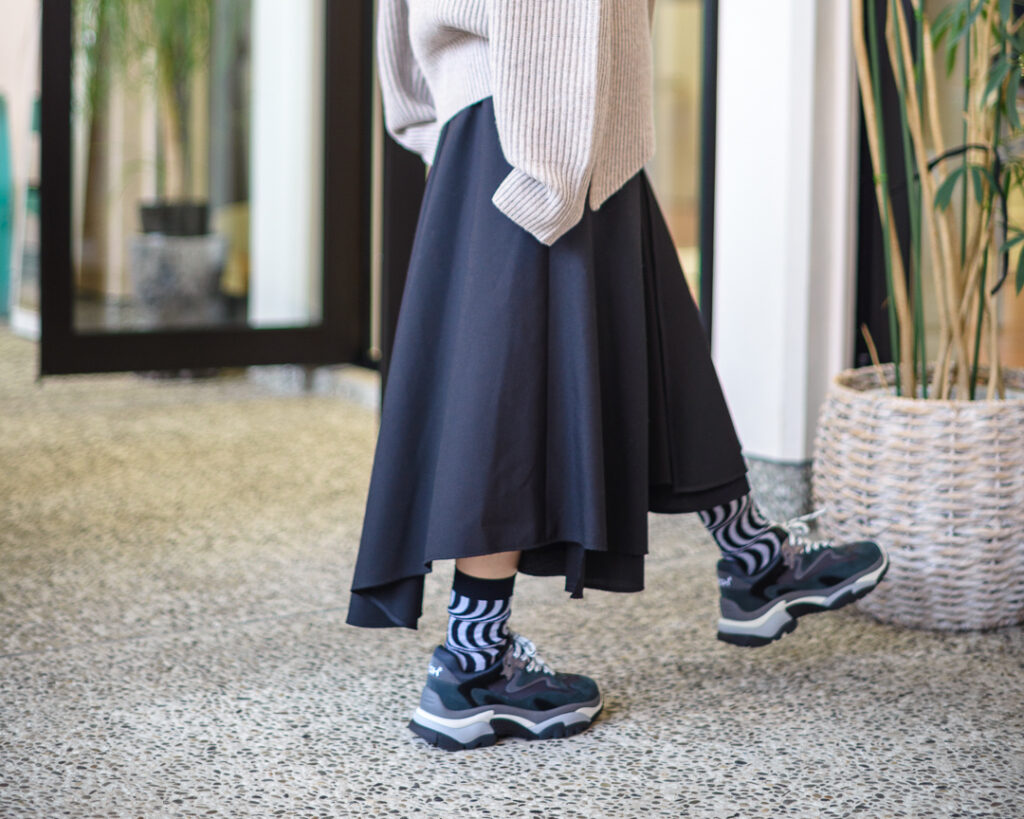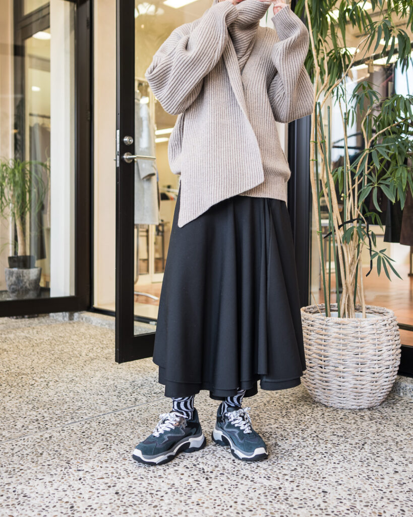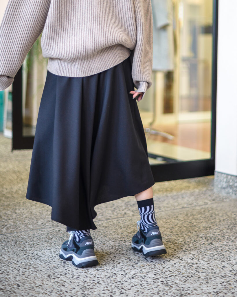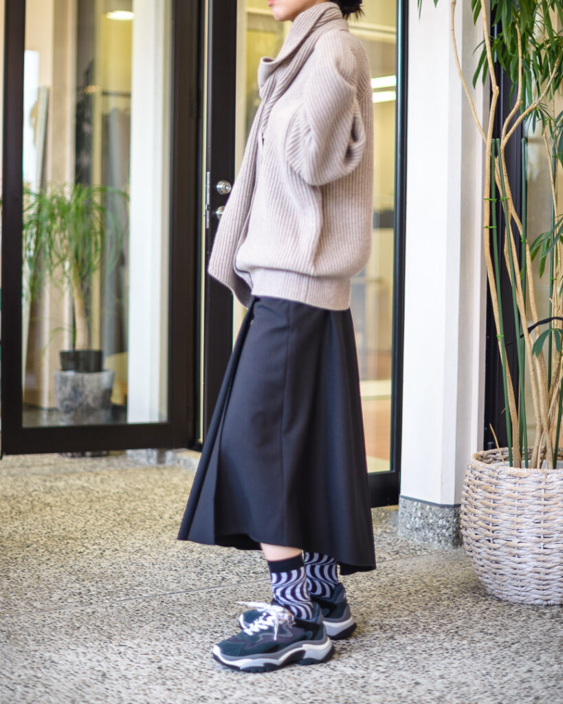 程よい肩抜け感もありつつ、ワイナンツらしく品よくまとまります。