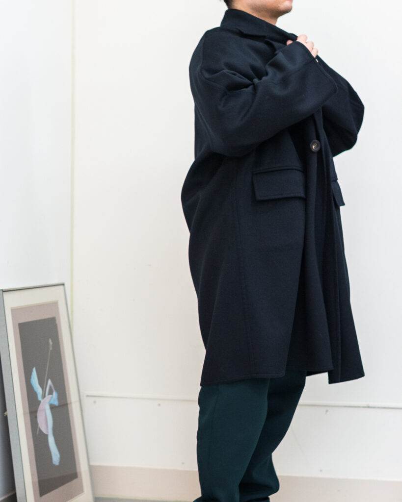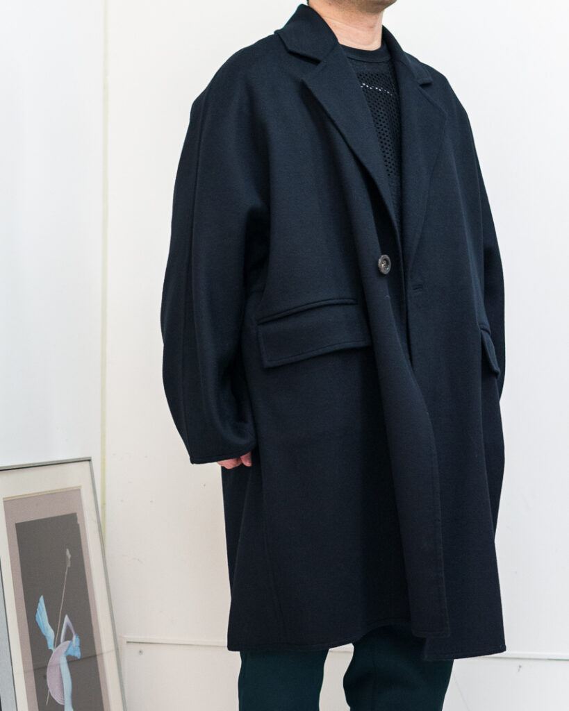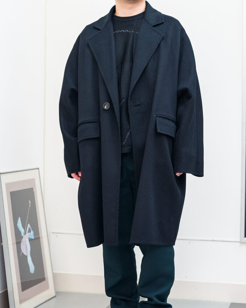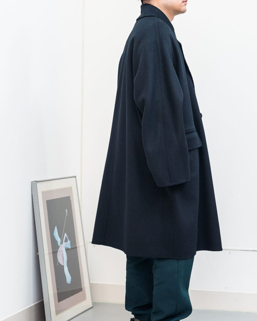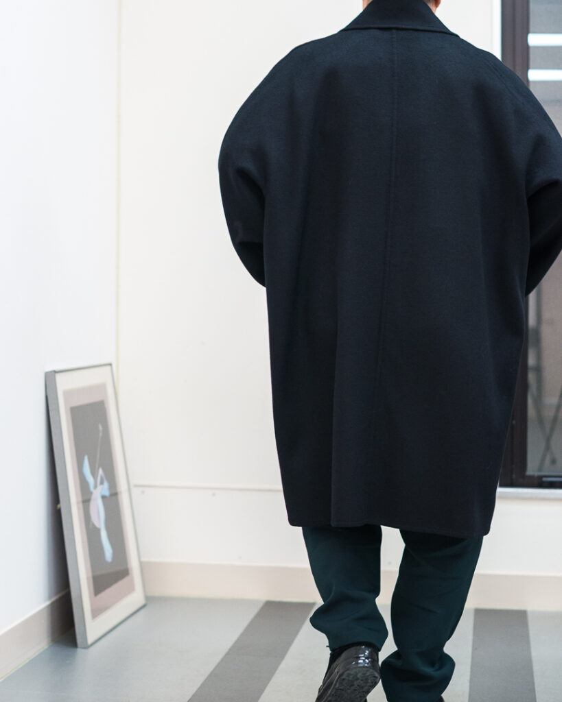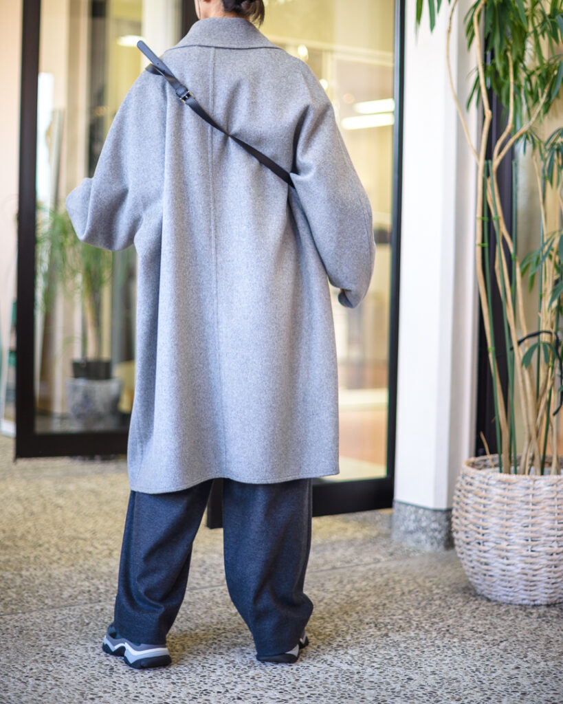 ウールカシミヤの上質な素材で仕立てたオーバーサイズコート。
