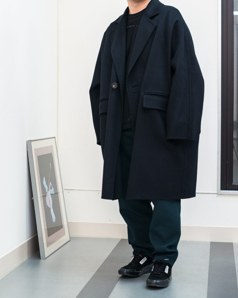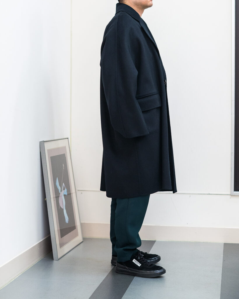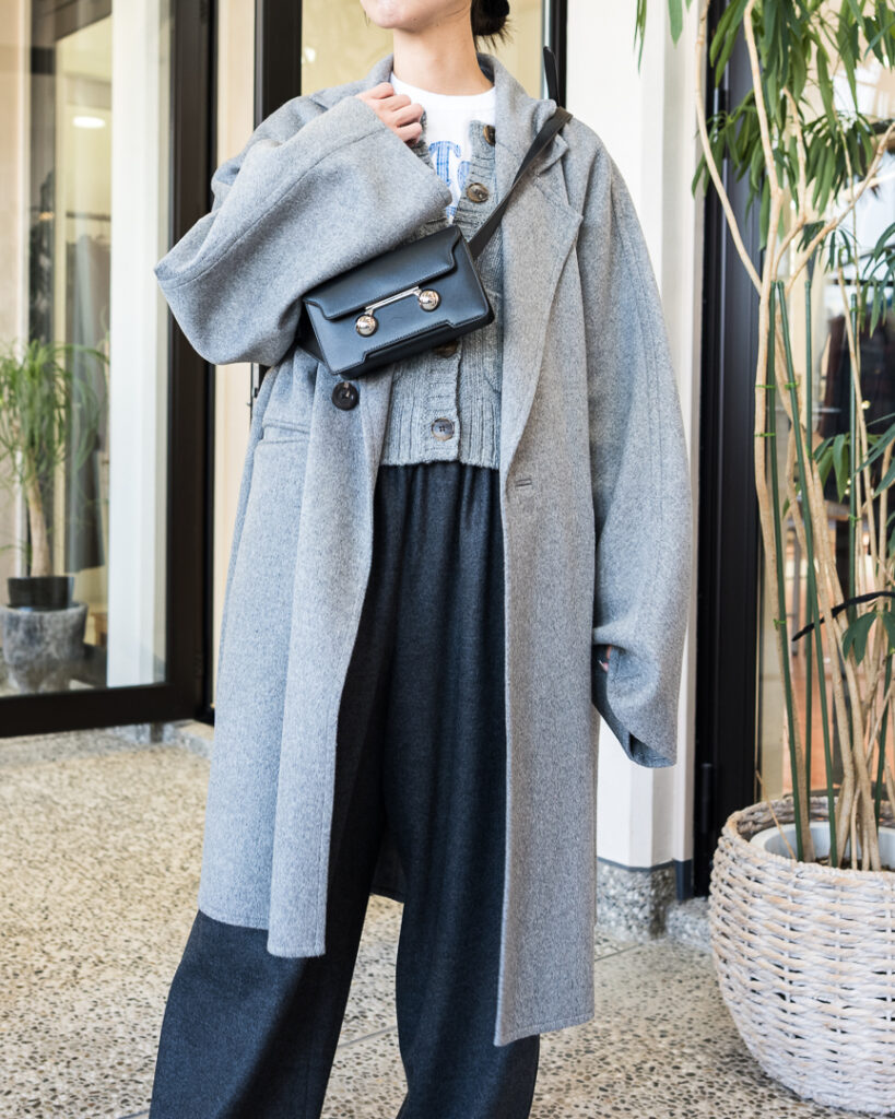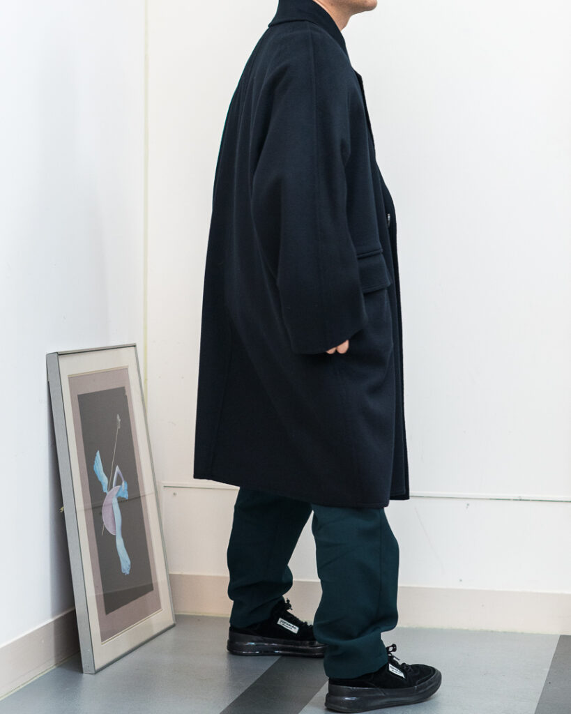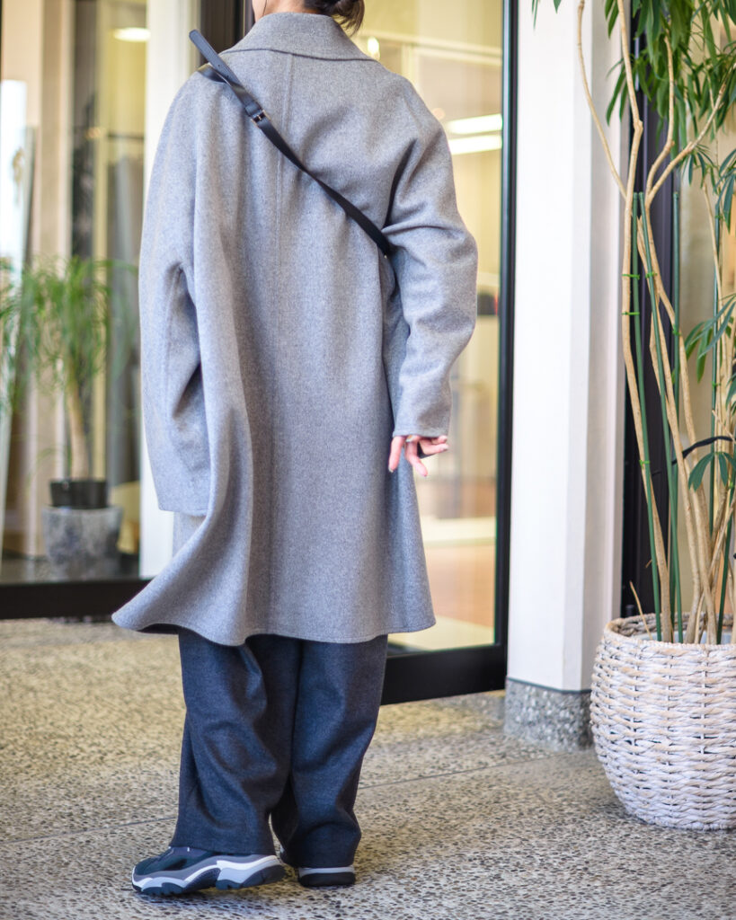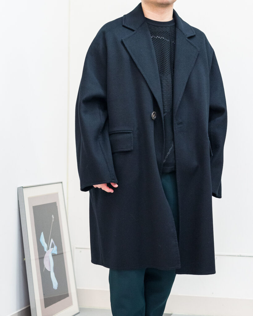 ウールカシミヤの上質な素材で仕立てたオーバーサイズコート。