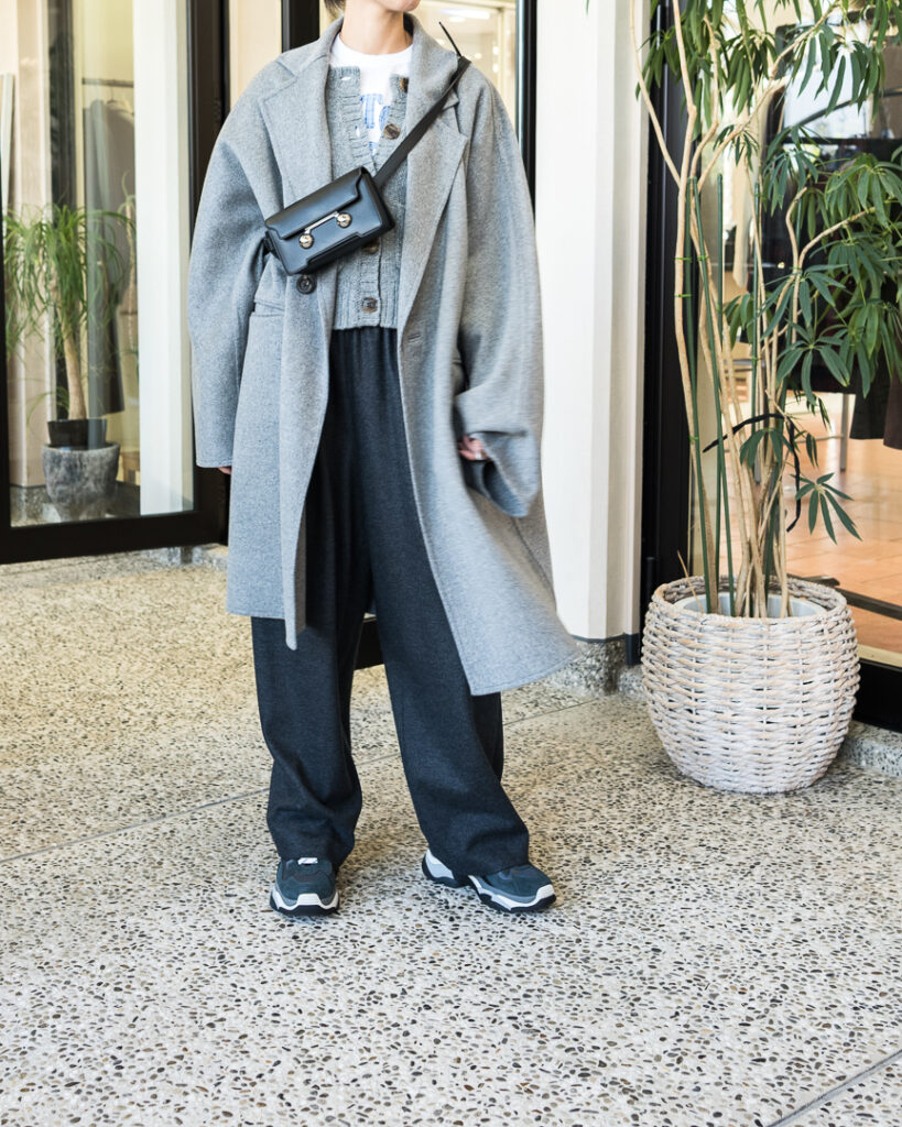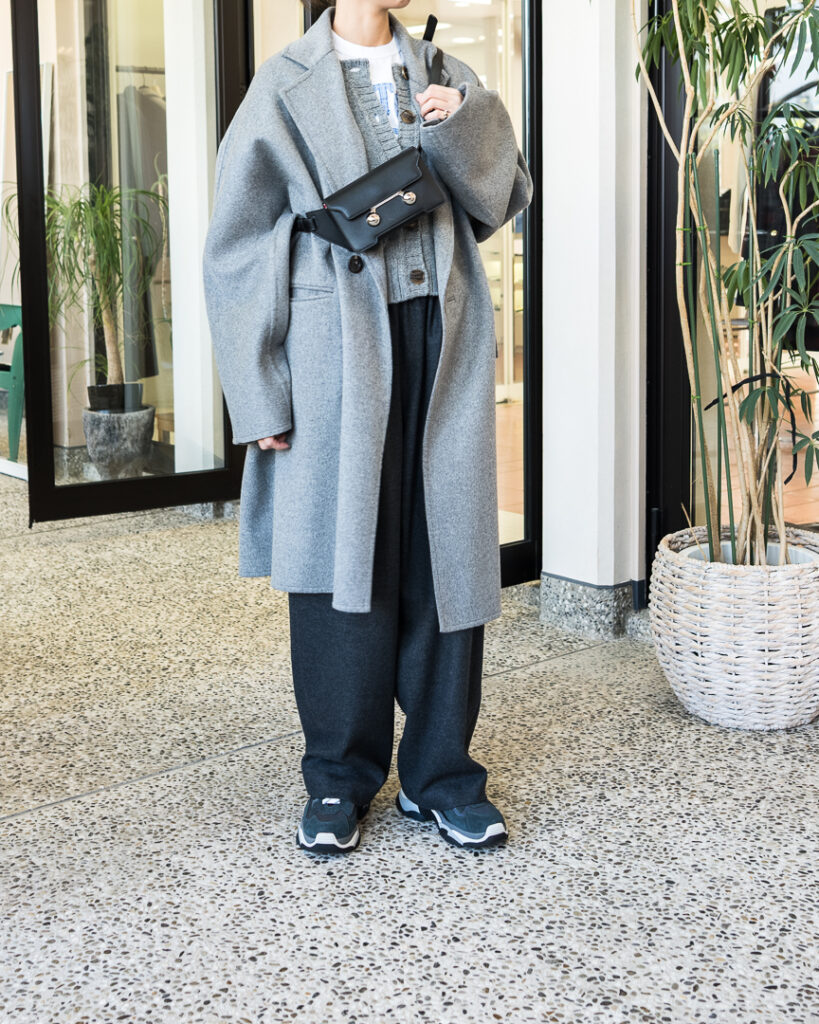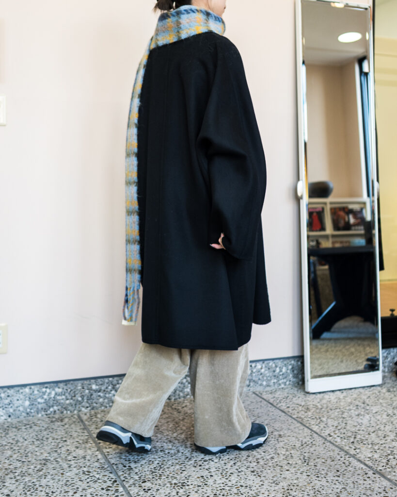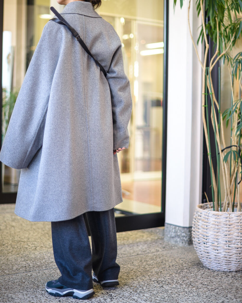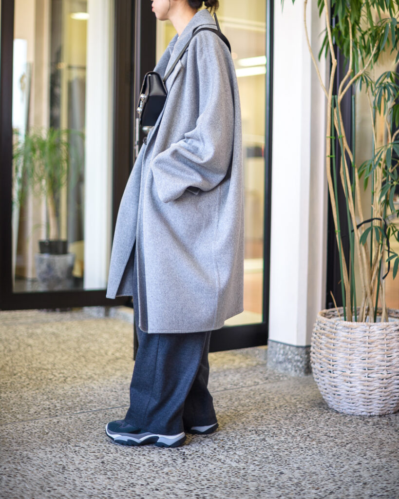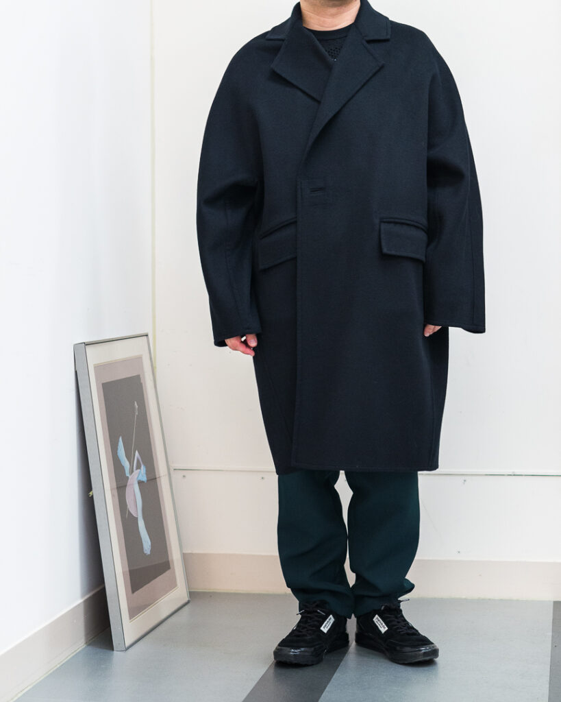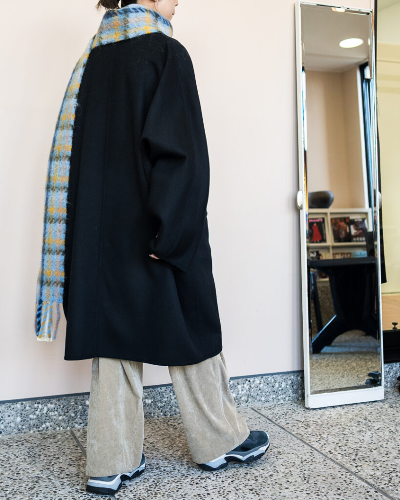 ウールカシミヤの上質な素材で仕立てたオーバーサイズコート。