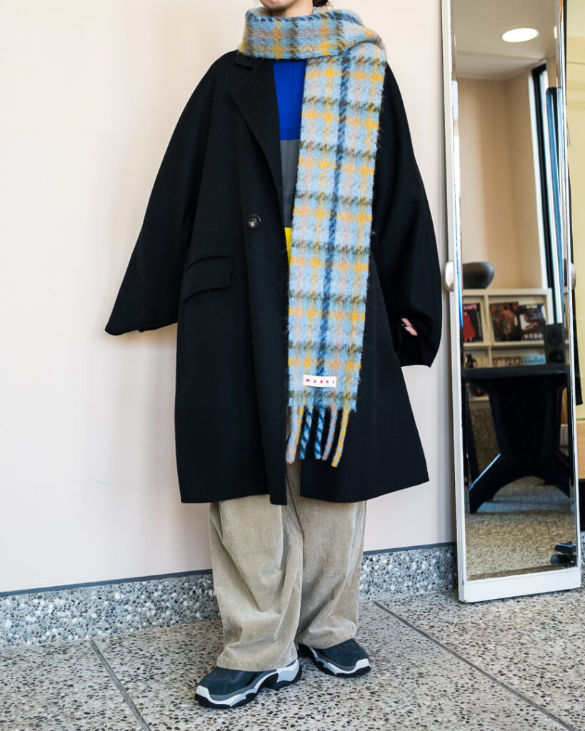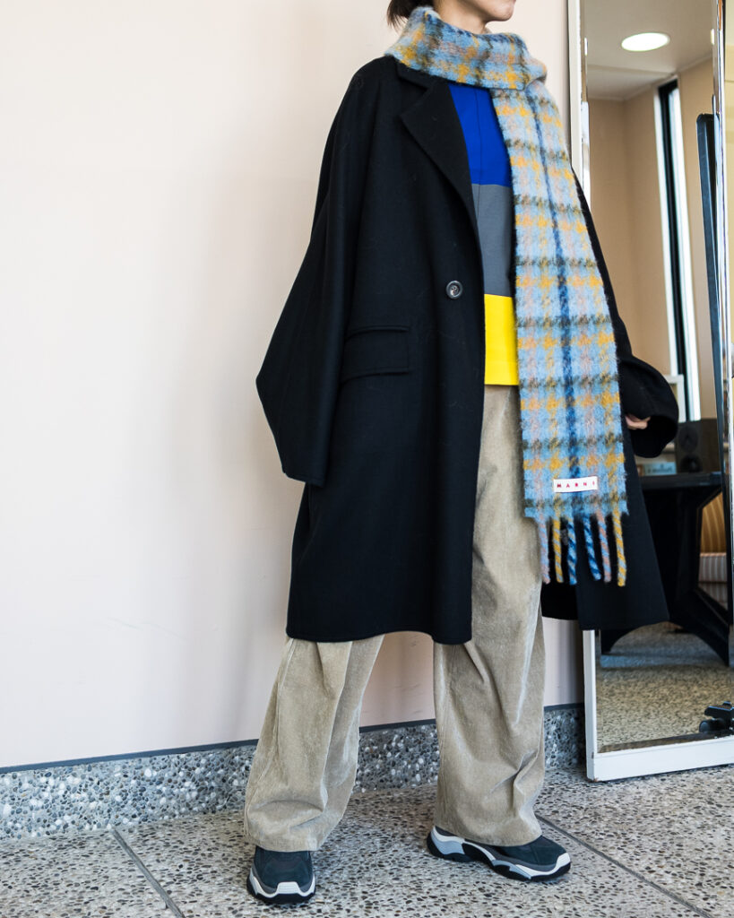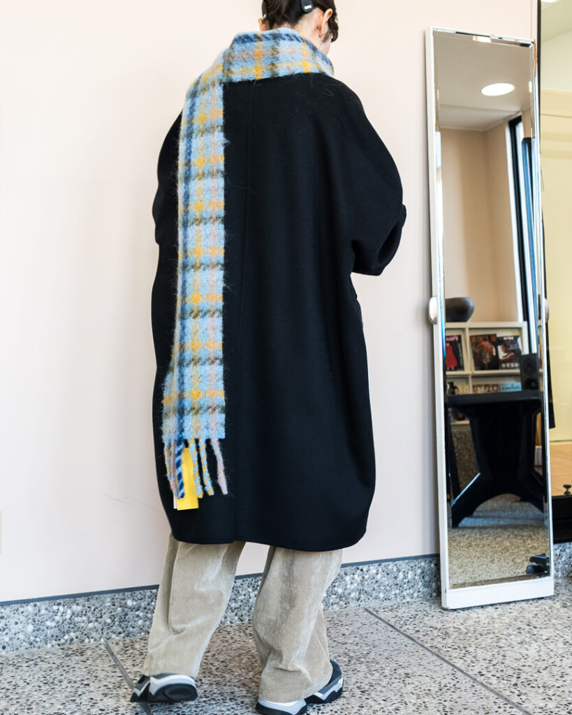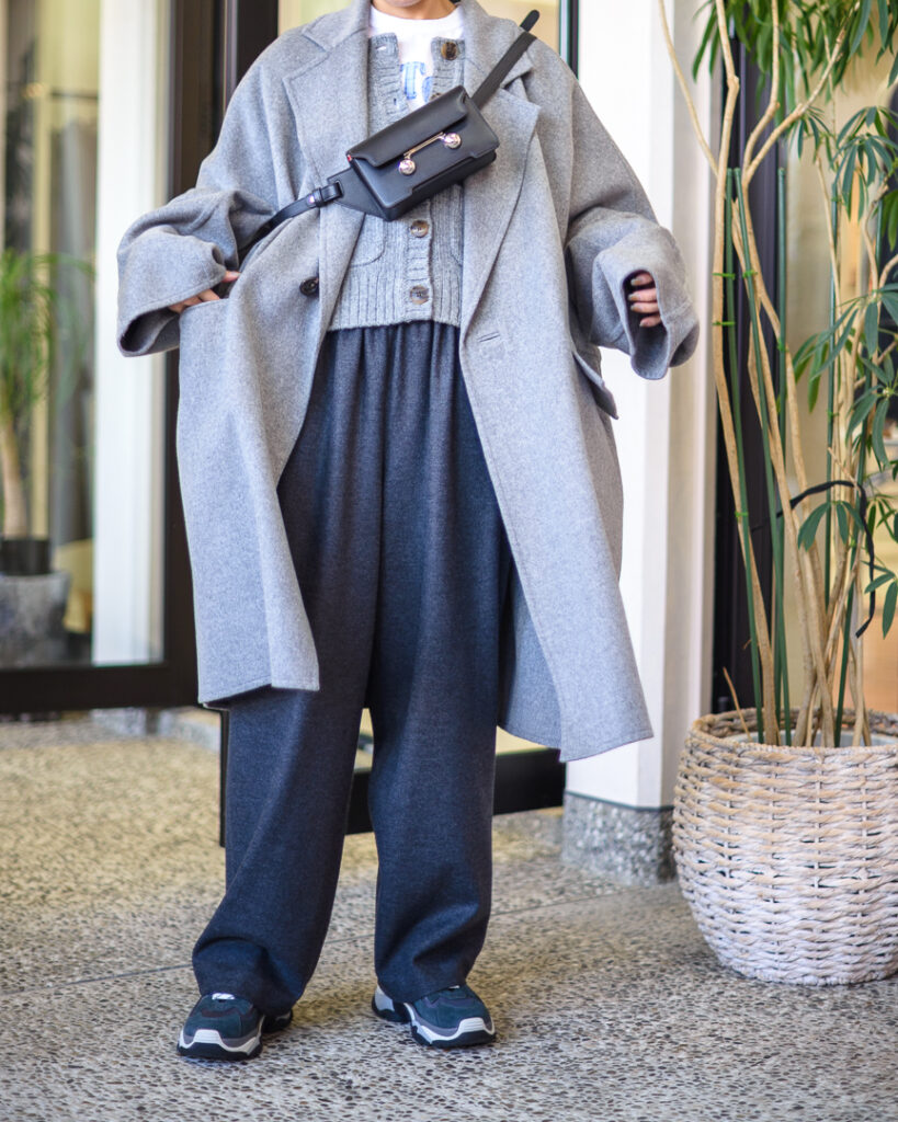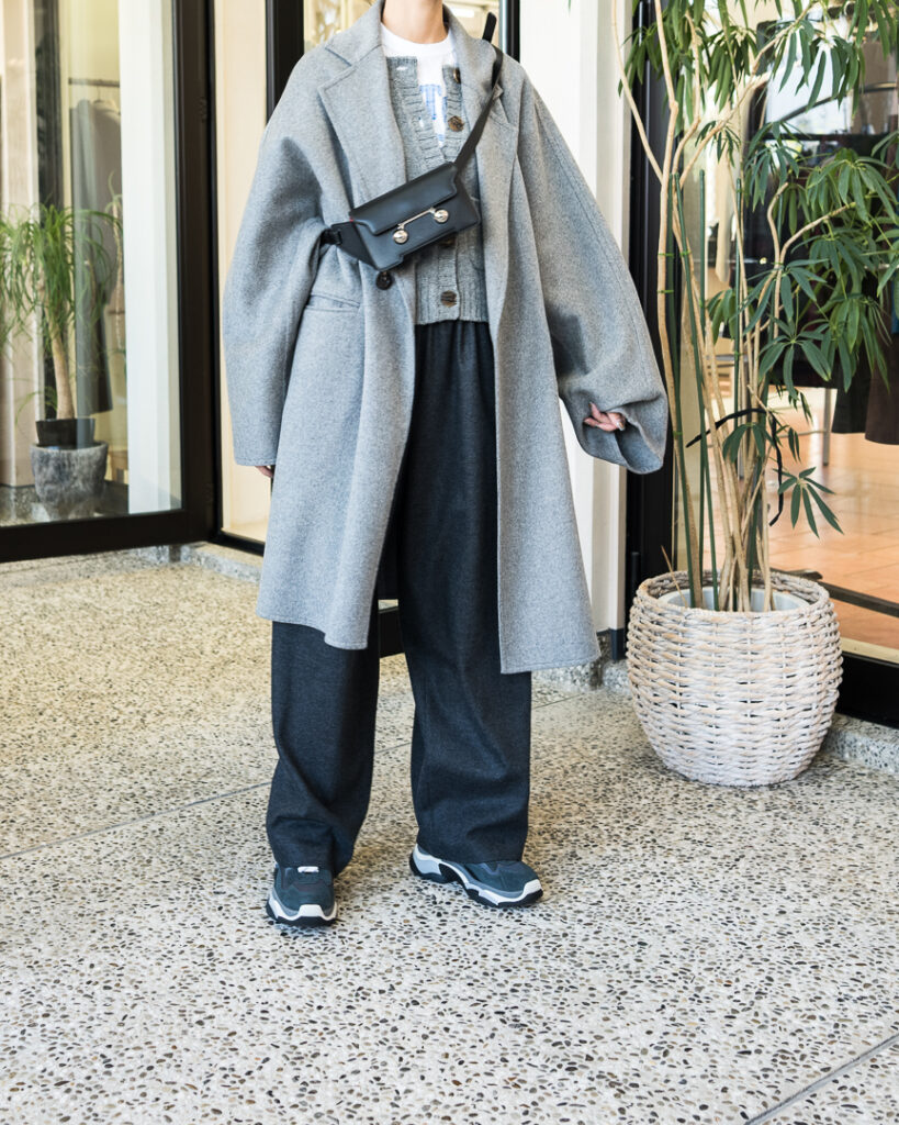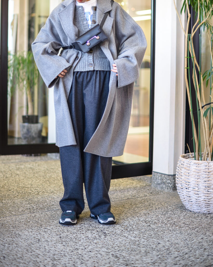 ウールカシミヤの上質な素材で仕立てたオーバーサイズコート。