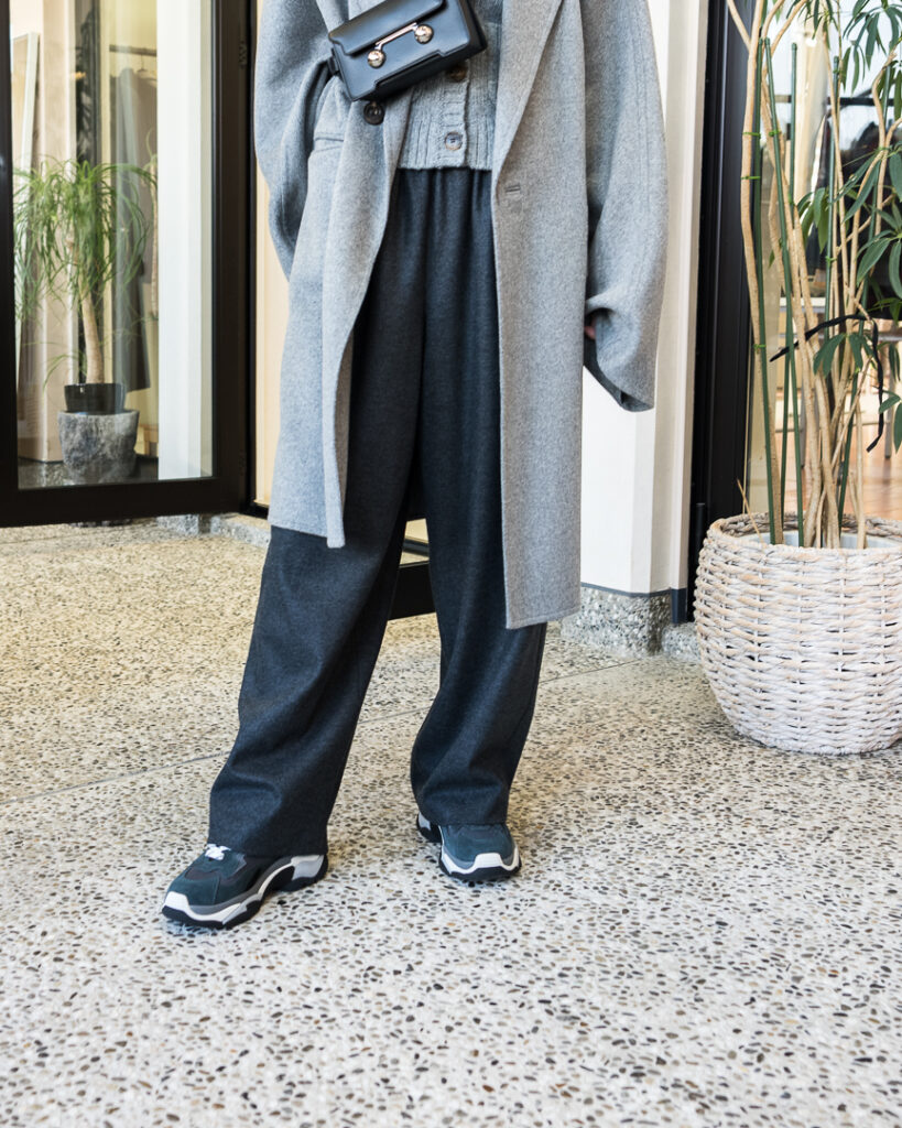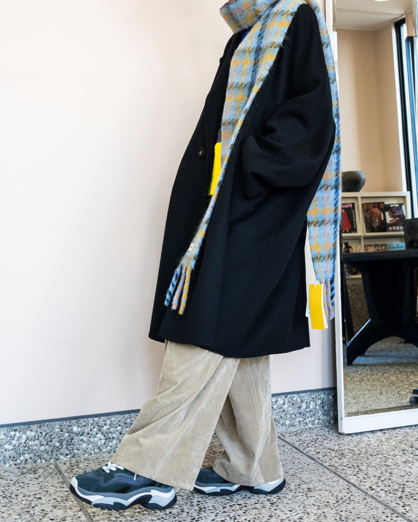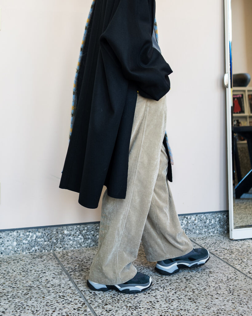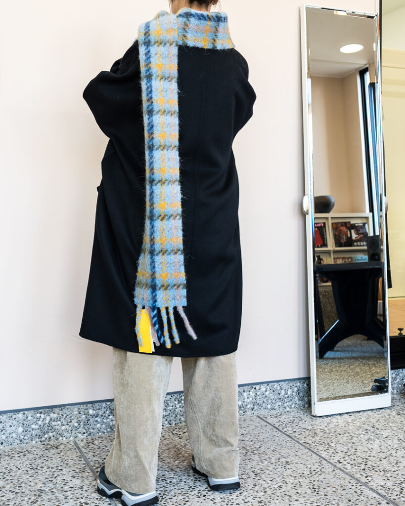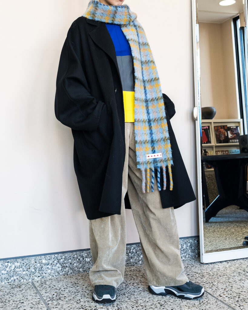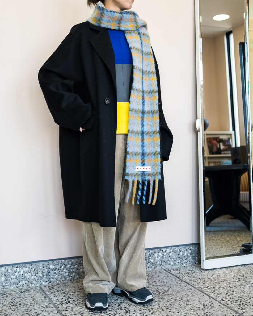 ウールカシミヤの上質な素材で仕立てたオーバーサイズコート。