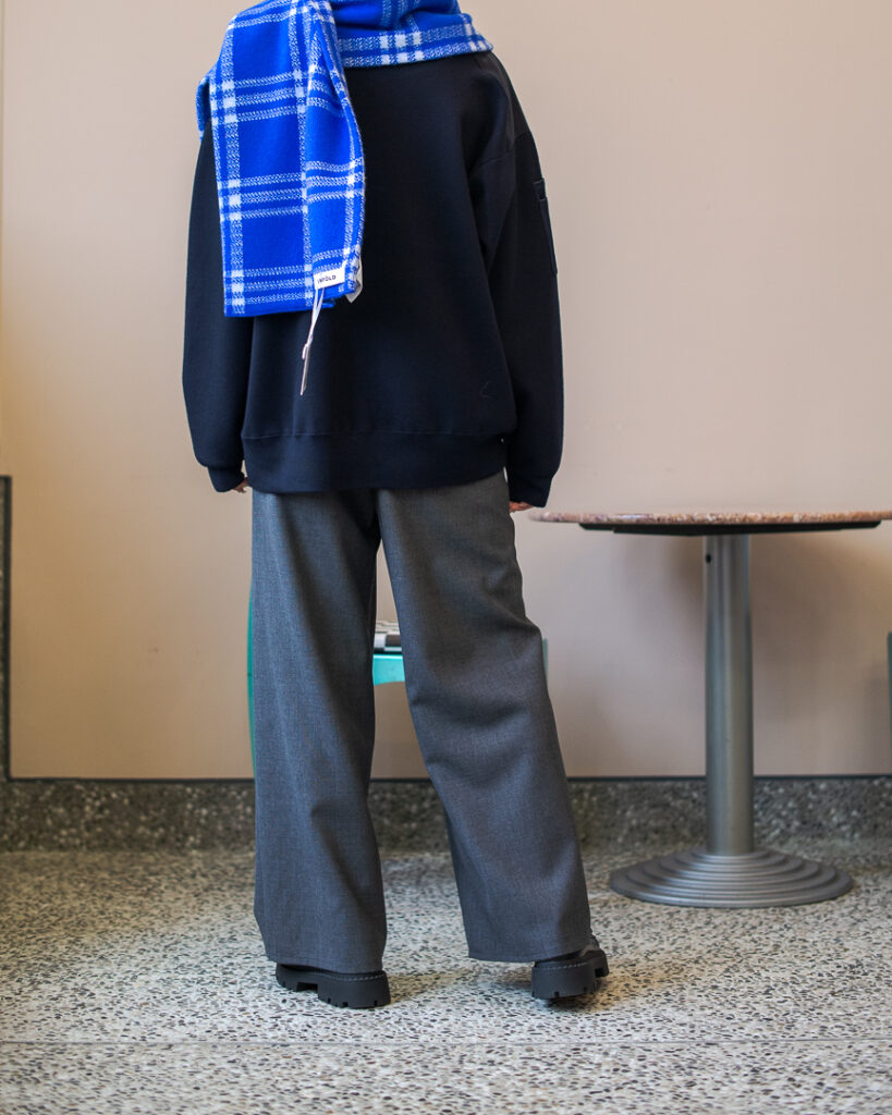 ウール仕様の5ポケットパンツ。デニムのような作り