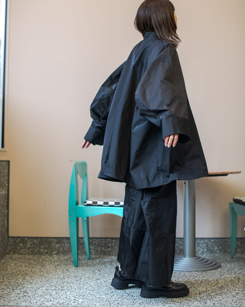 ラウンドシルエットの立体的なアームがポイントのミニマルなブルゾン。