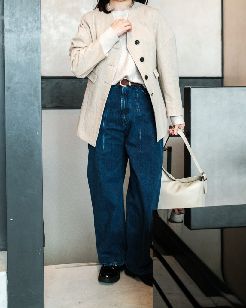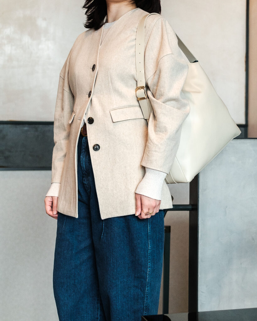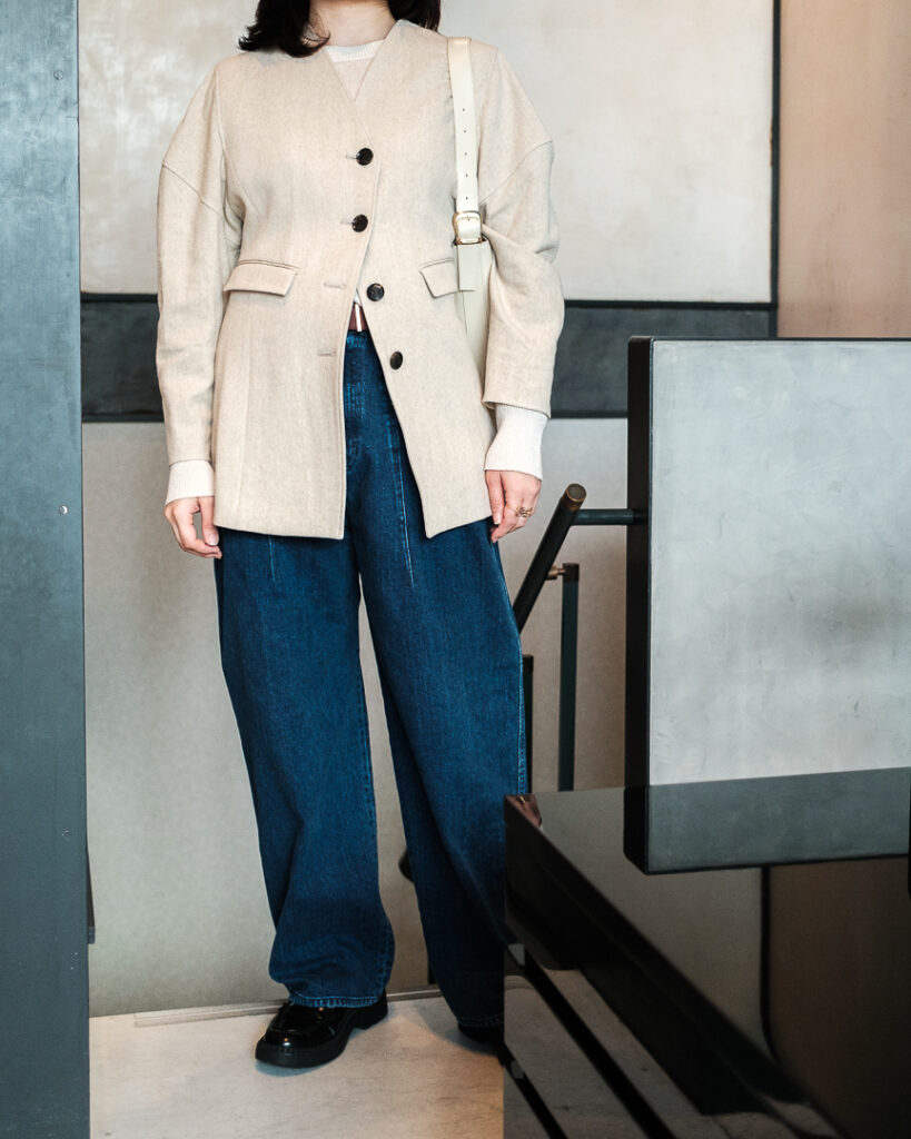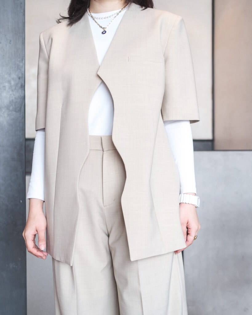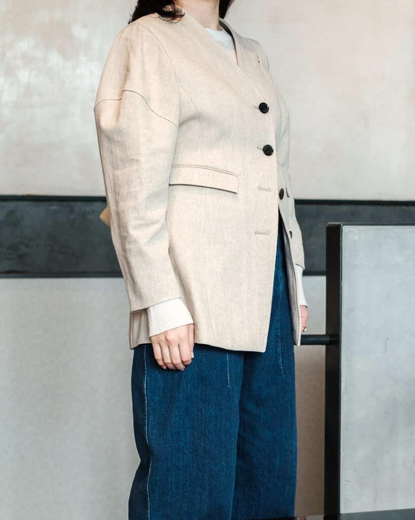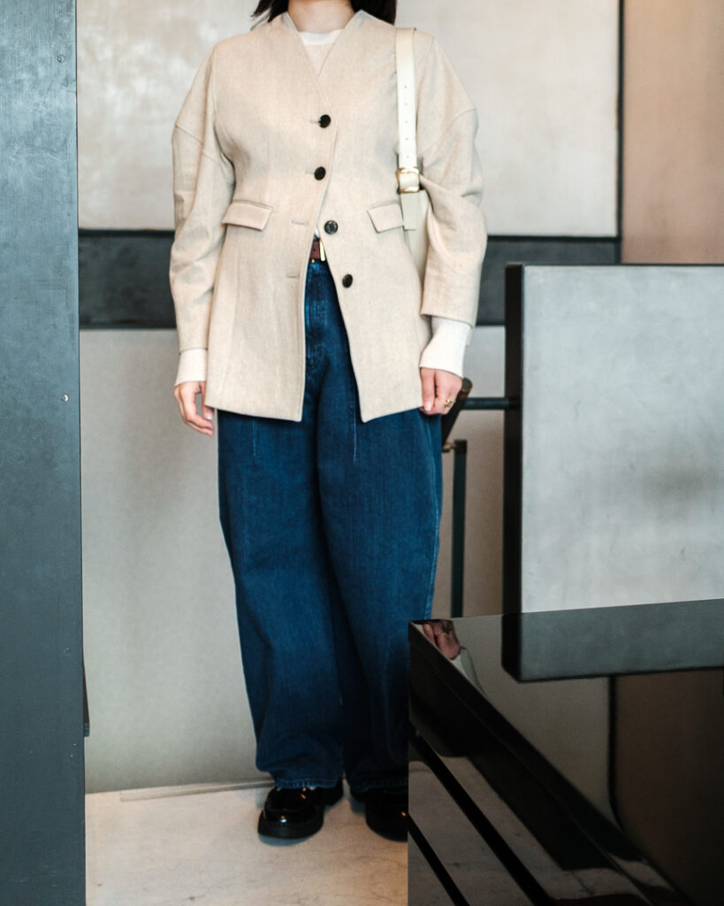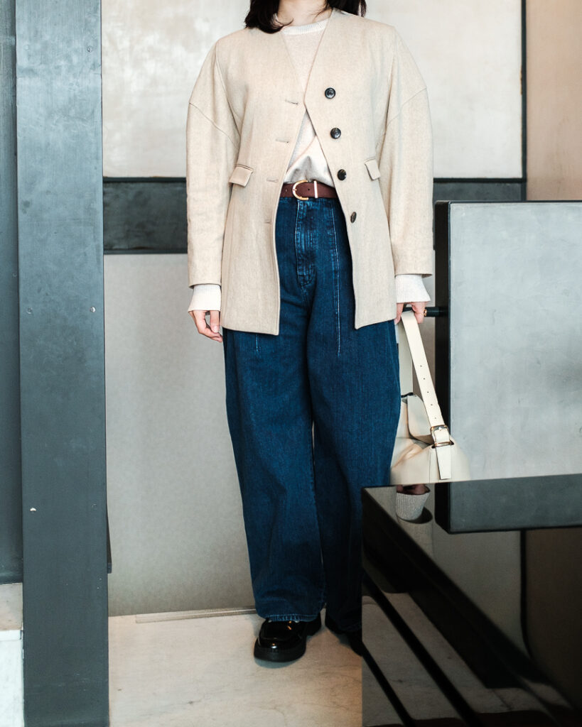 【素材】表地:ポリエステル67% ウール28% ポリウレタン5%|裏地:キュプラ100%