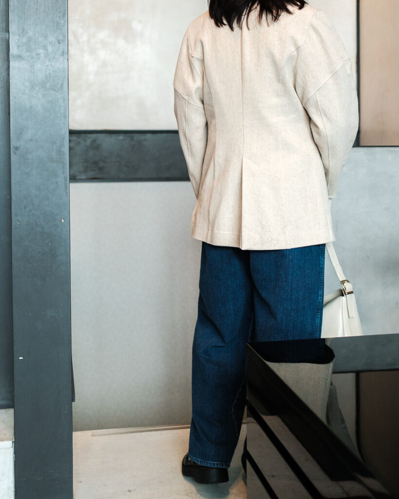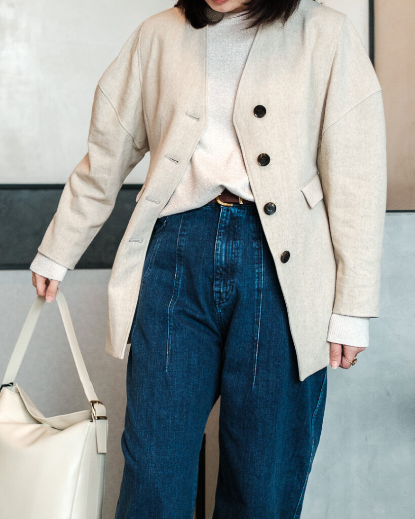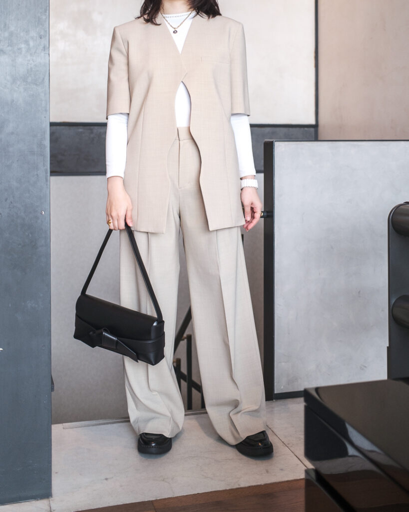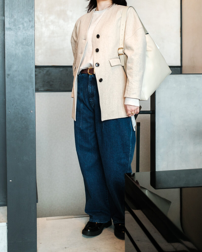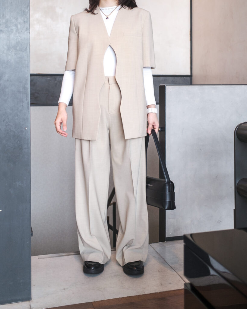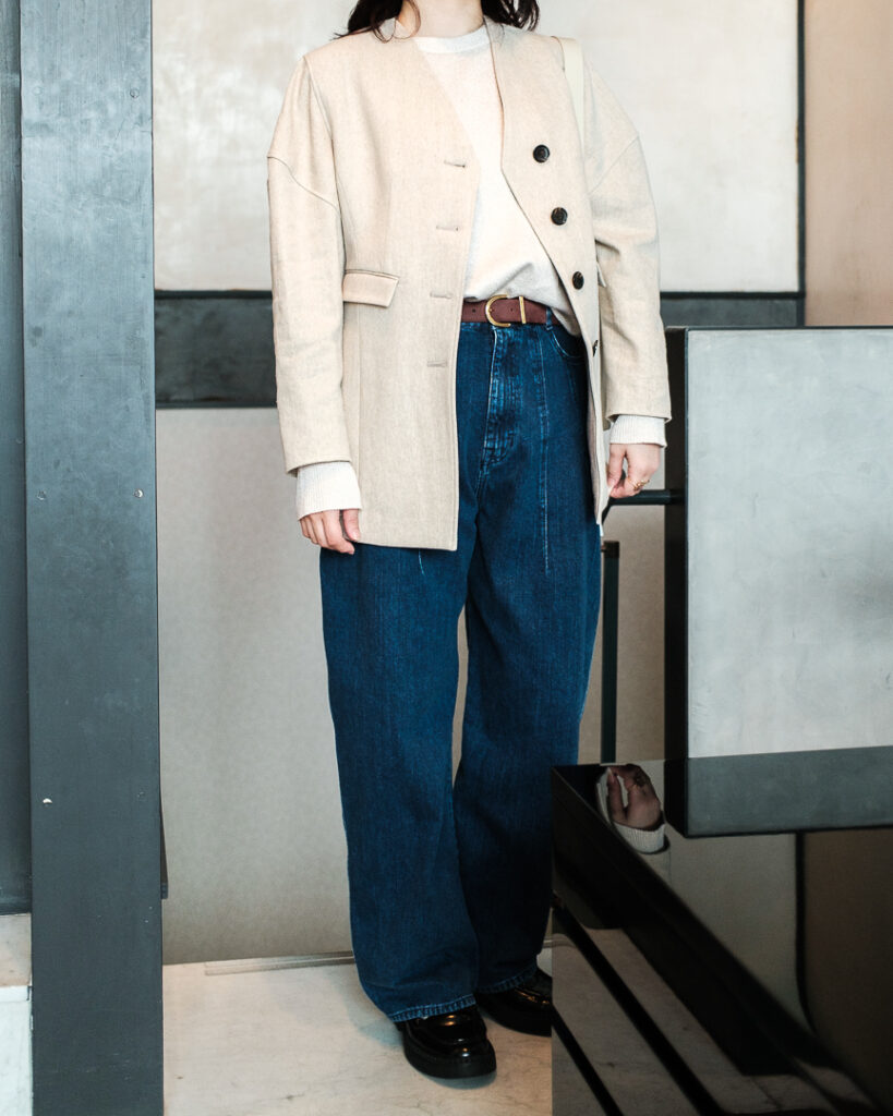 【素材】表地:ポリエステル67% ウール28% ポリウレタン5%|裏地:キュプラ100%