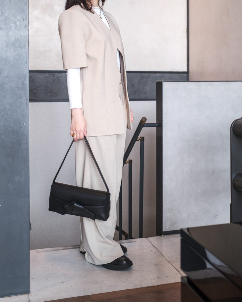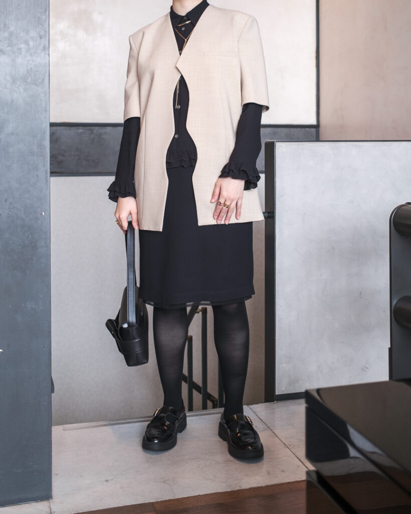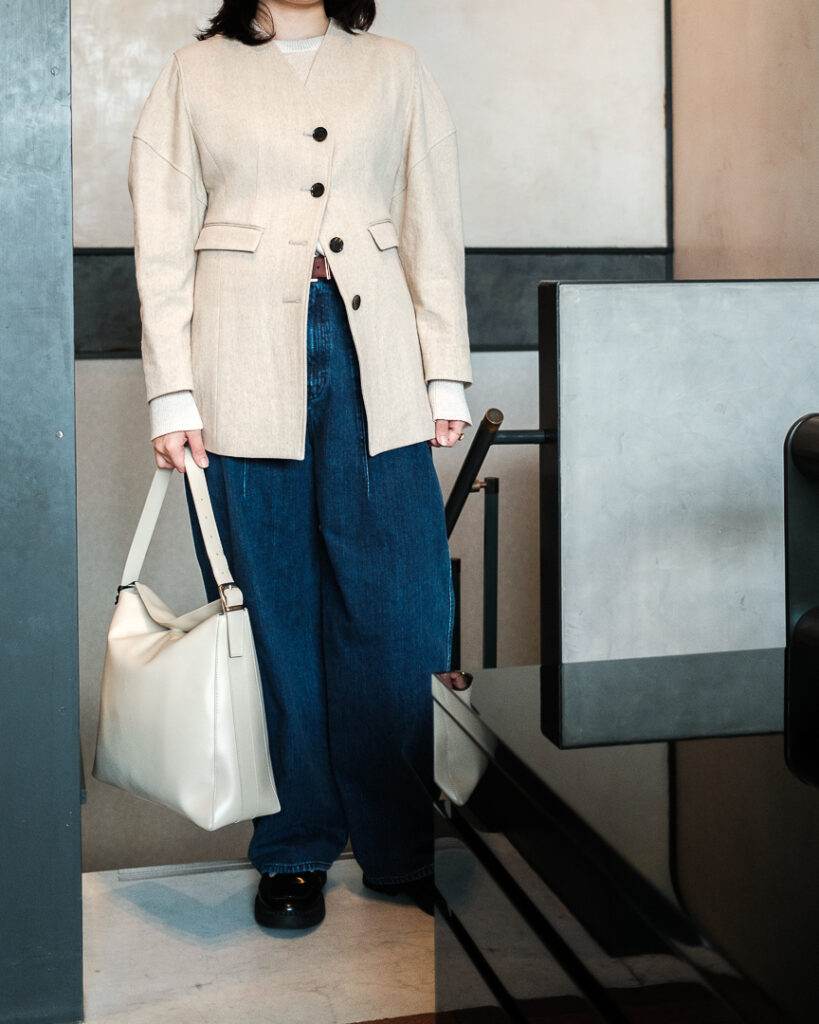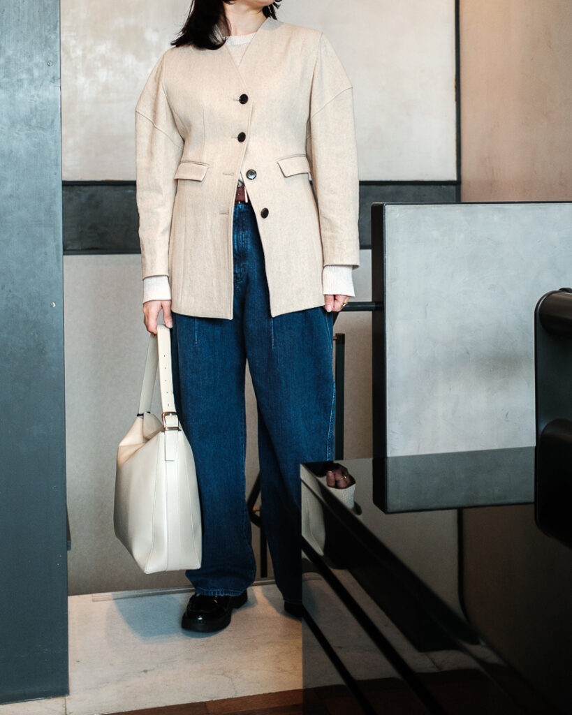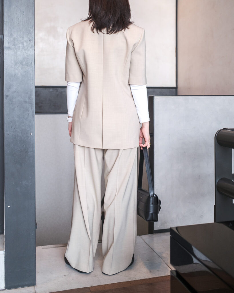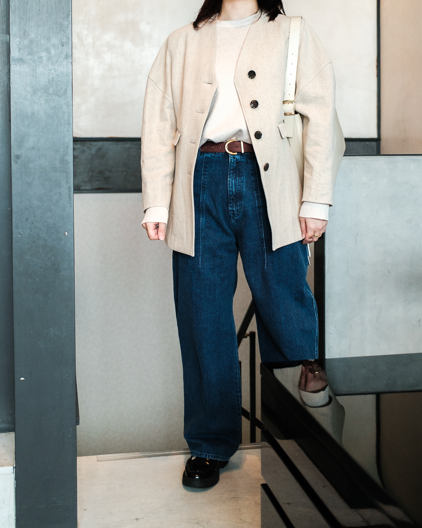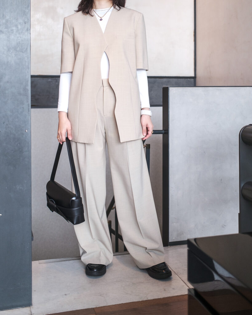 【素材】表地:ポリエステル67% ウール28% ポリウレタン5%|裏地:キュプラ100%